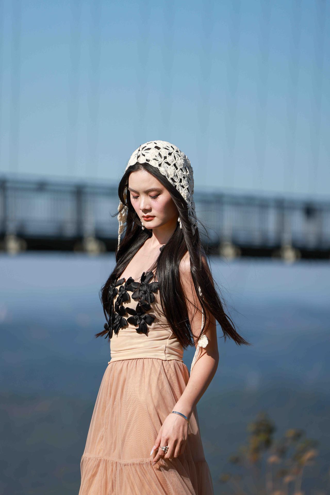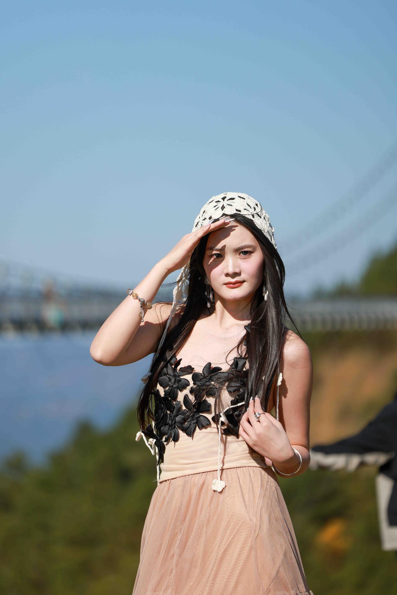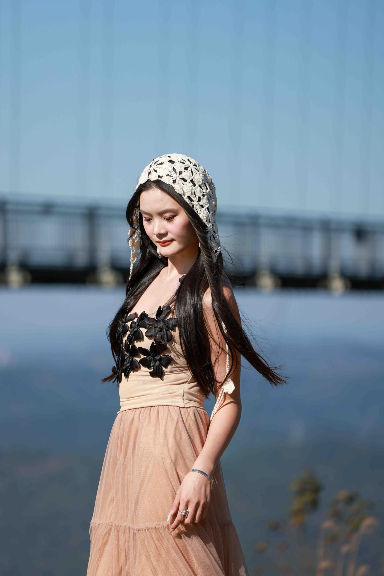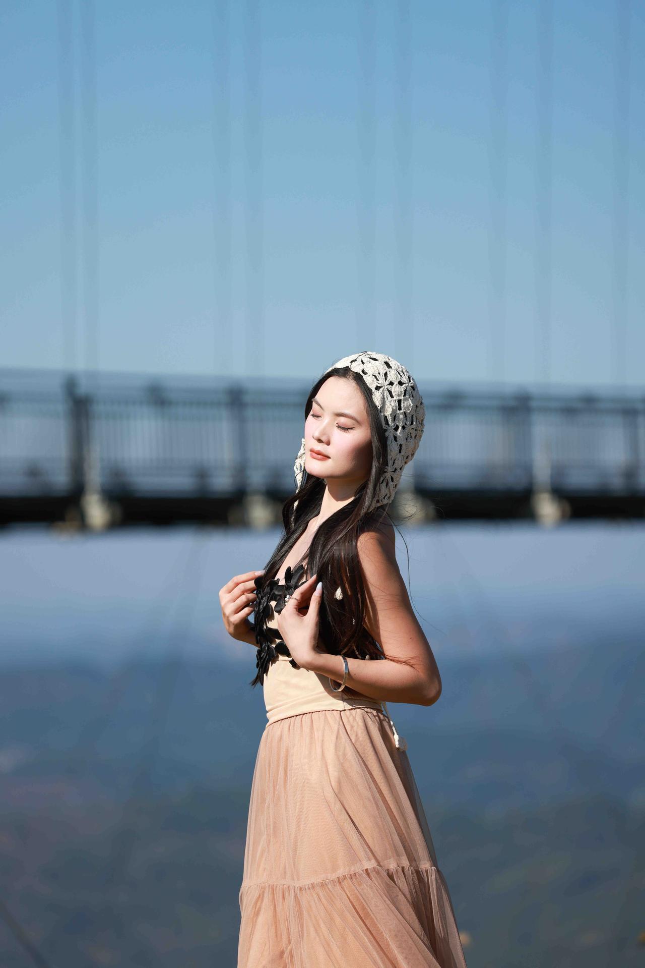 组图|蓝天下的镜头感。 当晴空撞上开阔的高空栈道,风就成了最好的拍照助手。 米杏色纱裙裹着轻柔的雾感,胸前的黑色立体花饰压出精致的分量,钩针蕾丝帽又捎来几分慵懒——这种“柔中带细”的穿搭,刚好和远处模糊的金属栏杆形成温柔与利落的对冲,让画面不单调也不杂乱。 不用逼自己瞪大眼睛盯镜头:垂眸时睫毛的弧度、风掀动长发的碎影,甚至抬手轻拢裙摆的小动作,都是比“看这里”更生动的瞬间。把肢体舒展开,让情绪跟着风松下来,镜头里留住的就不只是造型,还有当下刚好的心情。 拍照从不是“拗造型”的任务,是把风的温度、裙角的轻晃,一起框进画面里的温柔。