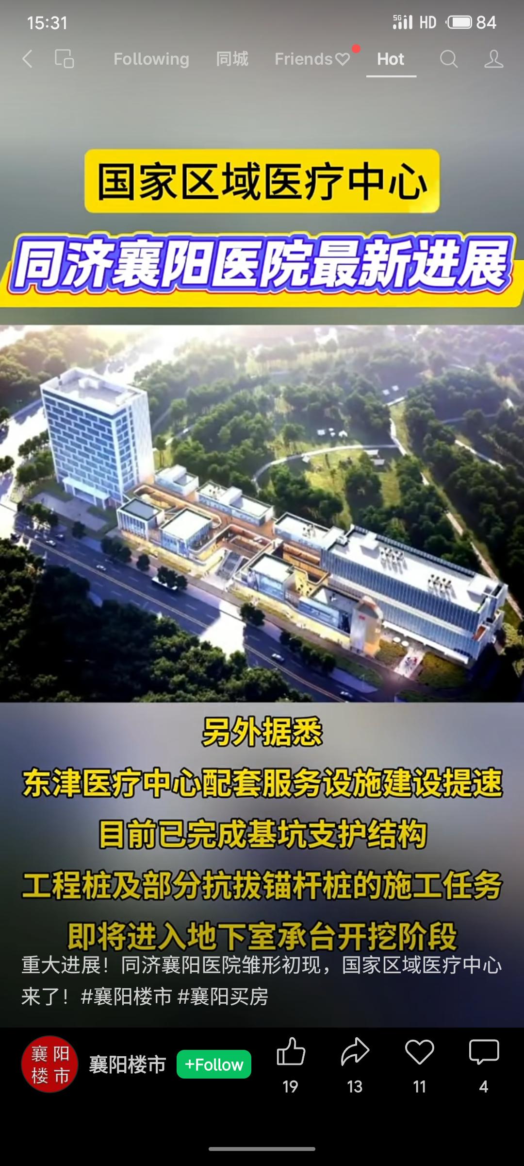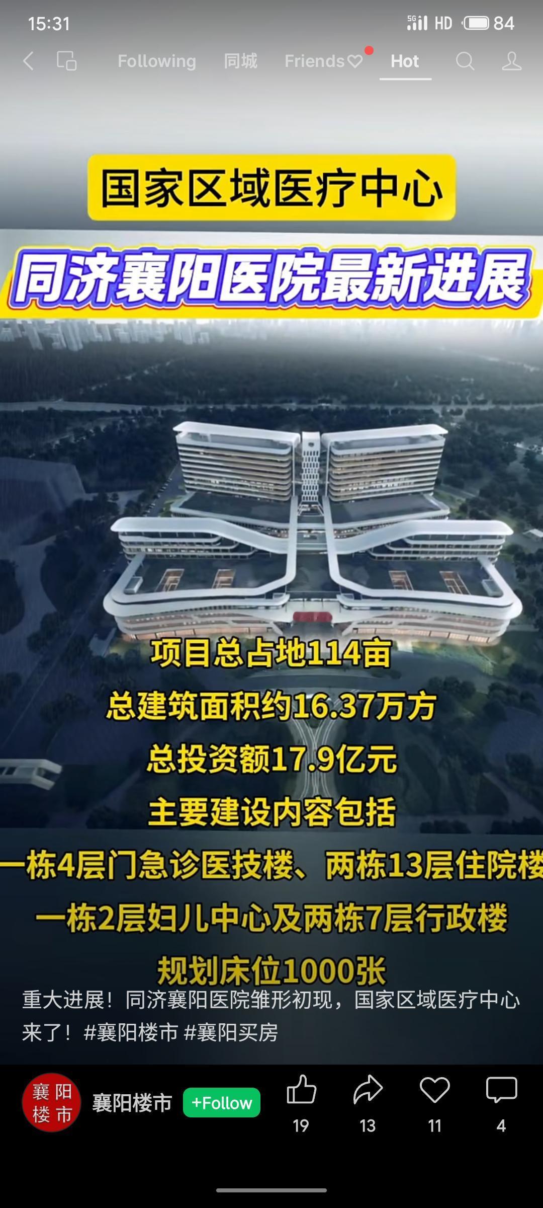 同济襄阳医院项目主体结构与抹灰工程已全面完工,目前正同步推进内外装饰装修。其配套的东津医疗中心已完成基坑支护等基础施工,即将进入地下室承台开挖阶段。