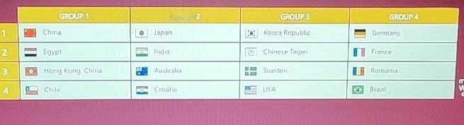 2025成都国际乒联混合团体世界杯中国队第一阶段分组 Group 1 中国、埃及、中国香港、智利