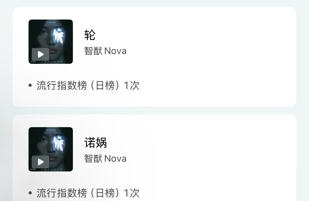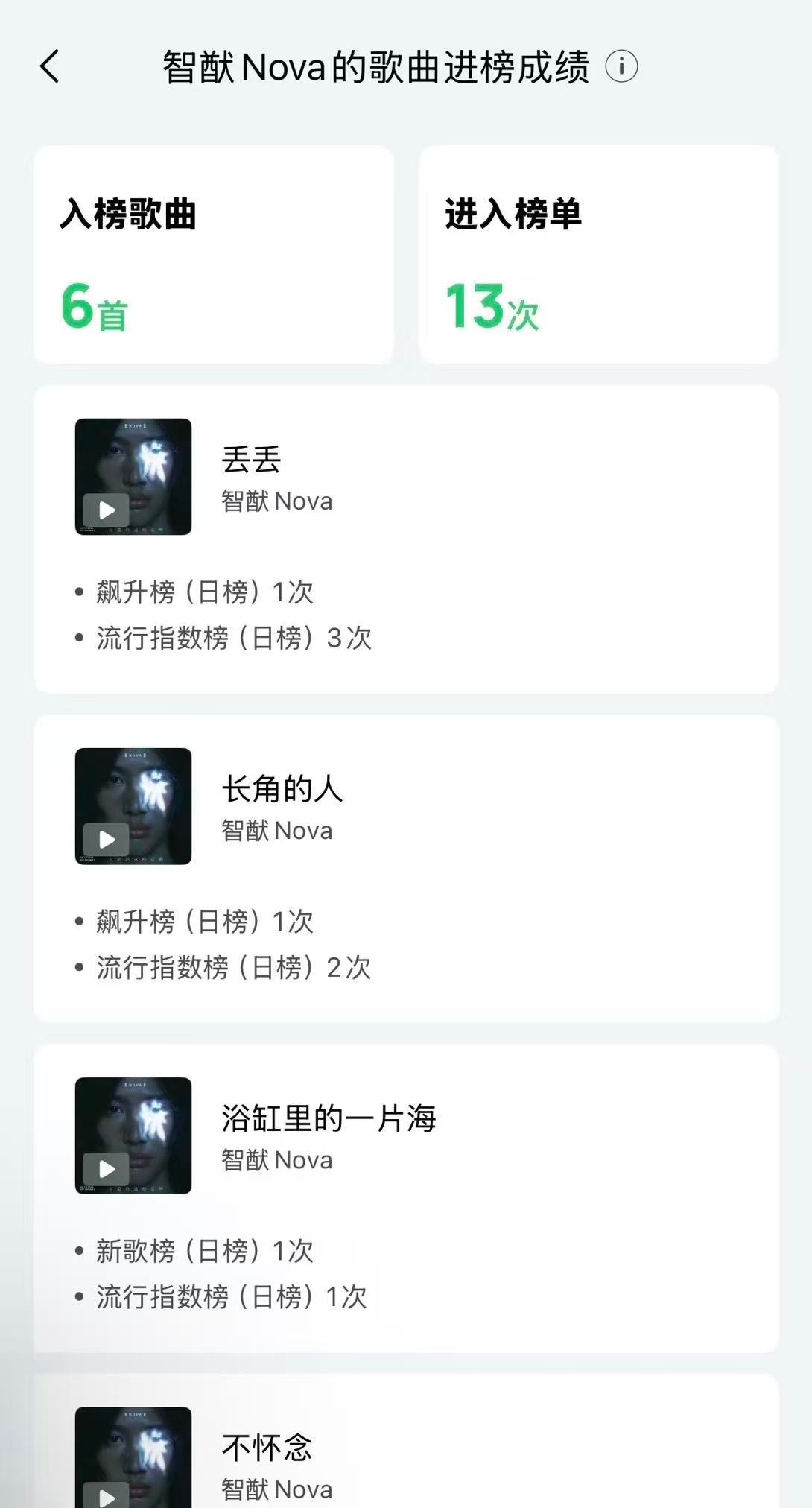 智猷丢丢多平台上榜智猷新歌登华语榜第二乐坛新Diva智猷…携新歌《丢丢》强势突围!这首旋律抓耳到循环上瘾的作品,不仅荣登“UFO Network”华语榜第二,整张专辑更是开启霸榜模式——多首单曲横扫QQ音乐飙升榜、流行指数榜13次,斩获网易云音乐新歌榜、飙升榜6次席位,多平台战绩亮眼!新专辑不仅打破风格边界,流行、抒情等多元曲风无缝切换,而且每首歌都藏着惊喜,既彰显创作实力,真是年度必听的宝藏专辑!