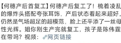 何穗这复工状态我服了!爆炸头金耳饰,姐的字典里没有‘产后休养’,只有‘T台召唤’。超模的孕期是带薪休假,产假是换个造型师。