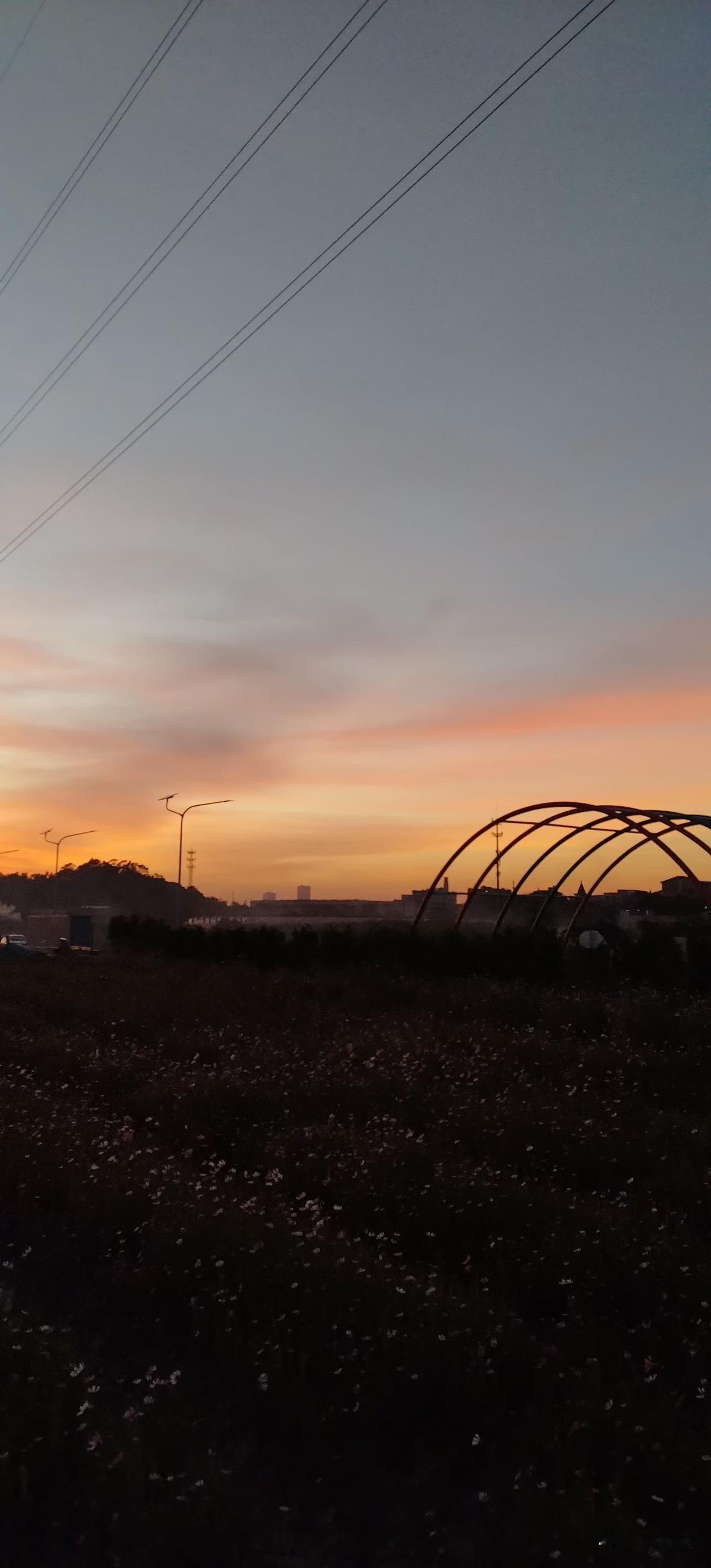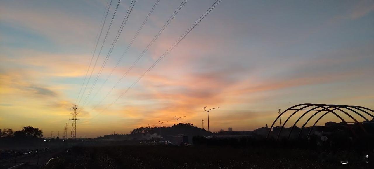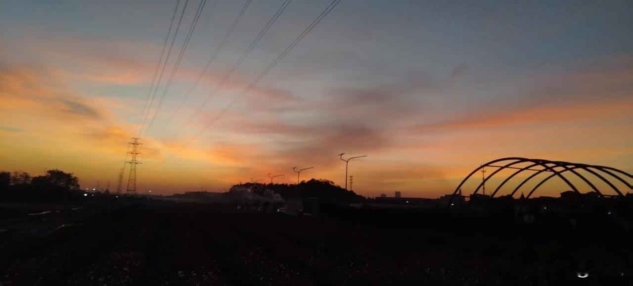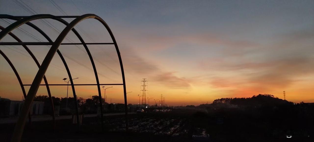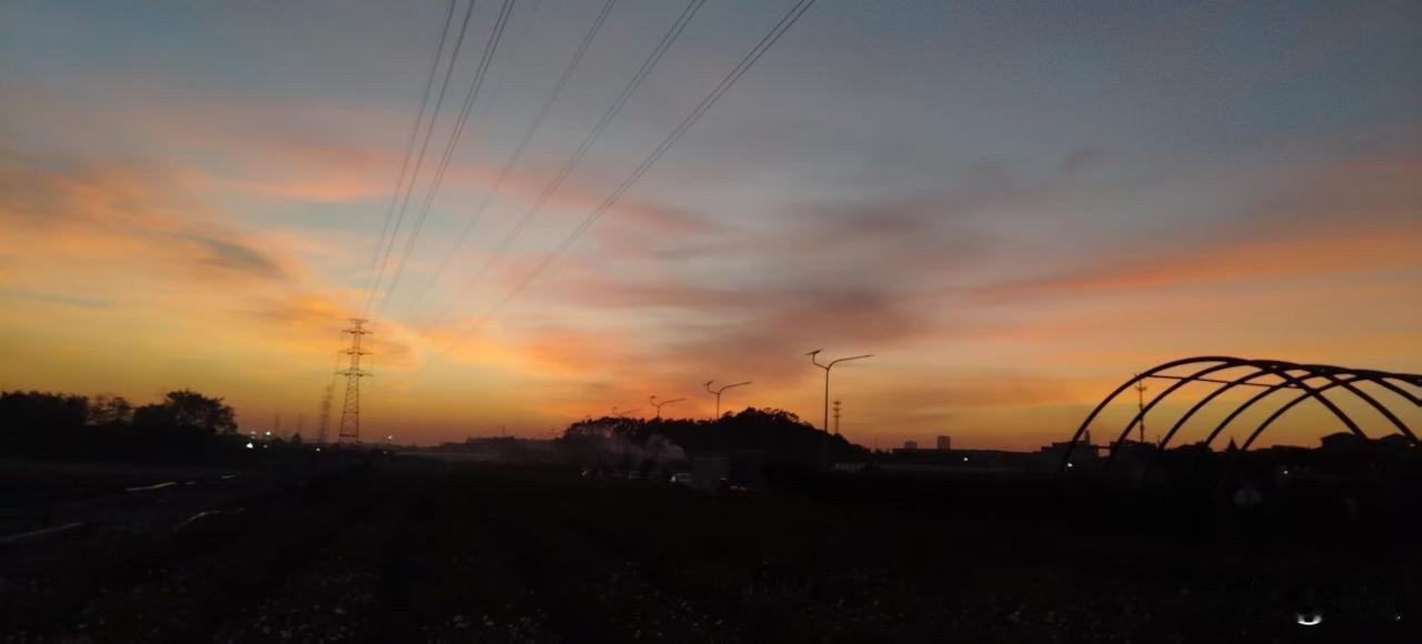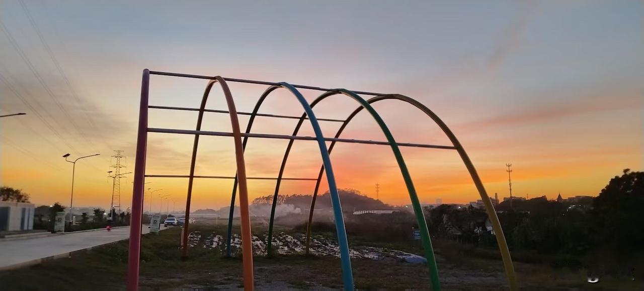 【长洲晚照:被晚霞慢下来的时光】 晚霞漫过长洲,时间在这里慢了下来。 橘粉的云絮裹着渐沉的落日,把电线、铁塔的轮廓晕成温柔的剪影,连路边彩色的钢架拱门都浸在暖光里,少了几分工业的冷硬。 深秋的风裹着草屑的气息掠过旷野,远处的车灯缓缓亮起,像把这一帧黄昏拉成了绵长的诗——赶路人的匆忙,此时此刻,都被这铺天盖地的温柔摁下了暂停键。 长洲岛旅游 广州长洲 长洲岛旅游攻略