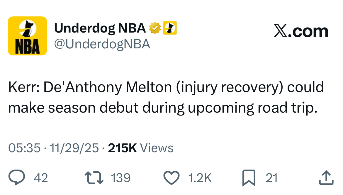 科尔:梅尔顿有可能在接下来的客场之旅复出