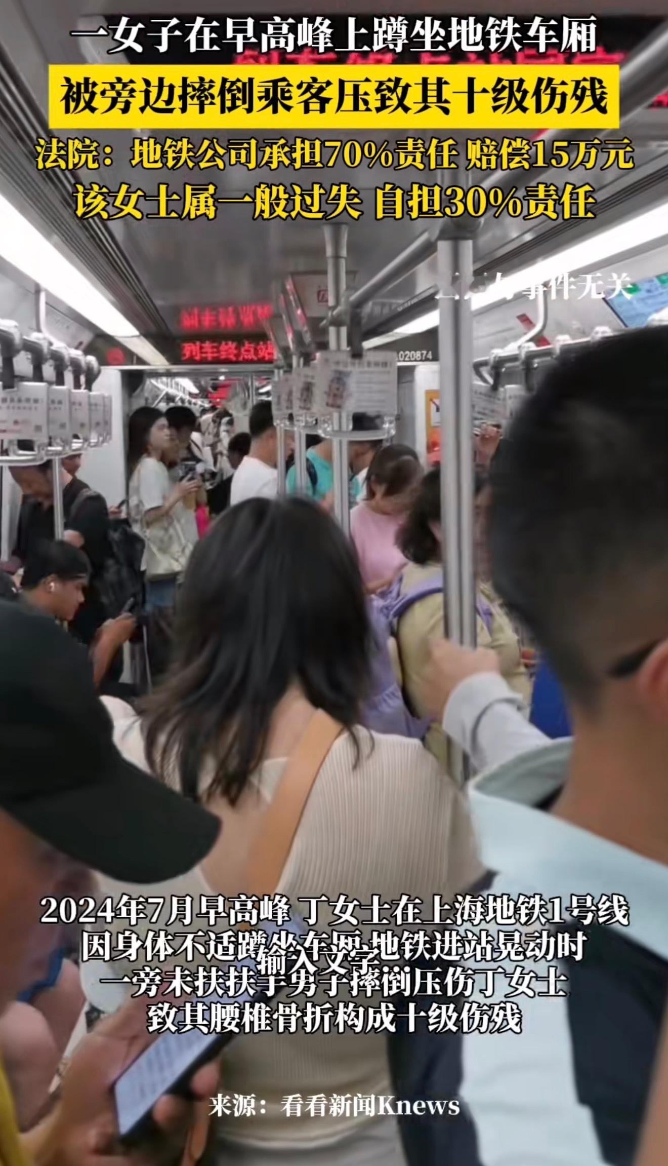 女子地铁内蹲坐被压骨折地铁判赔15万这种让地铁公司赔有点不合理吧,以后会不会有碰