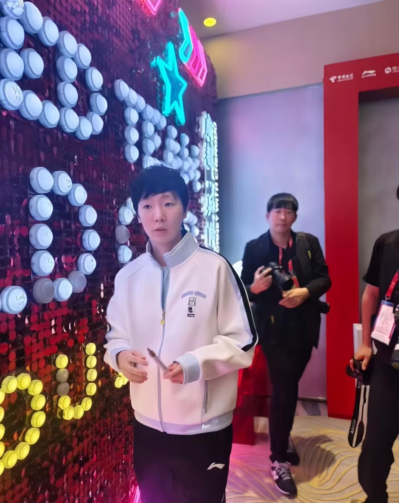 今晚成都混合团体世界杯举办欢迎晚宴,王曼昱穿着一身李宁运动服套装来到签名墙互动。 曼昱今天给人眼前一亮的感觉呢,小脸蛋温温柔柔,五官标致,素颜也是漂亮小鱼!176cm大高个往那一站,因为今天穿的运动鞋底厚一点,目测180cm的超模范儿,看起来挺拔亮眼! 明天成都混合团体世界杯比赛将正式开启,也期待王曼昱在比赛中带来精彩表现! 以过去两年王曼昱在混团中的出众表现来看,相信曼昱可以圆满完成任务!