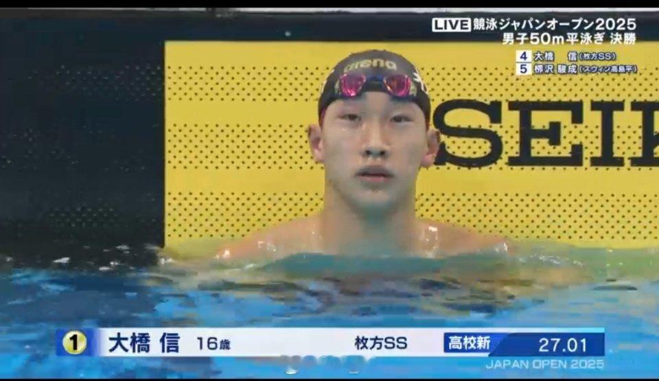 日本游泳公开赛 男50蛙决赛大桥信 27.01 日本高校纪录距离世青纪录只差0.06!