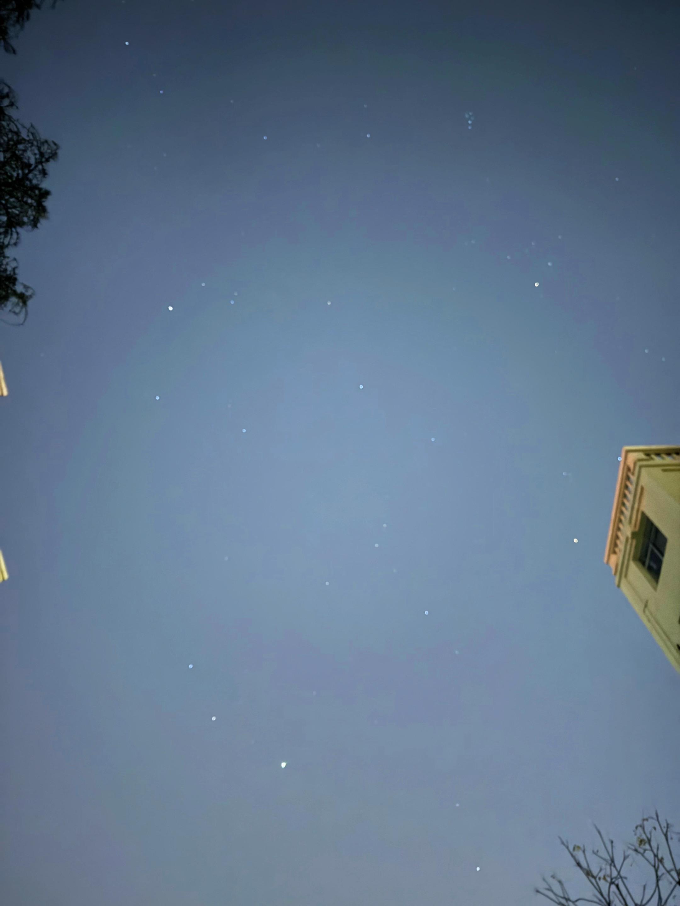 快看,城市的夜空也能看到好多星座。抬头看一看,试试连一连星座吧。
