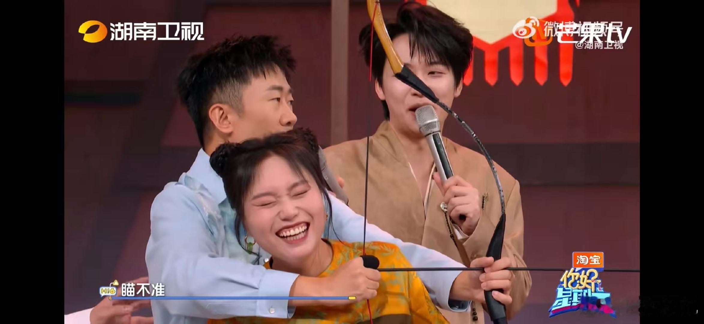 李雪琴杨迪凑一块太有节目效果了你好星期六杨迪表忠心翻车现场!对李雪琴喊 “李迪”,结果射箭脱靶,节目效果拉满~