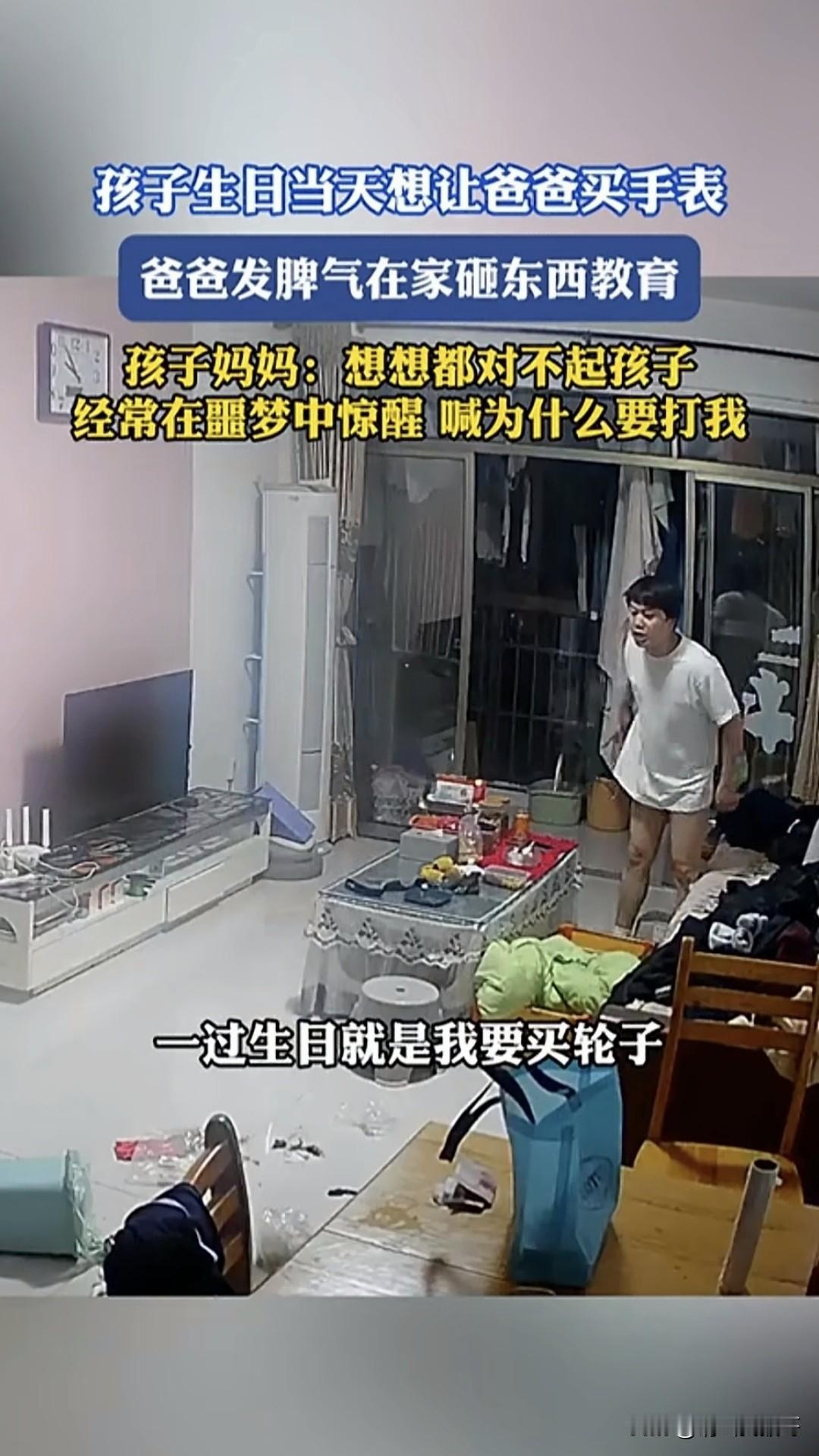也许这个父亲真的没钱了,在儿子生日那天大发雷霆砸东西,起因却是孩子在生日那天想要买一块手表,让他破防了。这位父亲对着老婆、孩子大吼大叫,埋怨孩子一天天的不想着好好读书,不是要买钓竿就是要买轮子。发视频的母亲称,孩子经常在噩梦中惊醒,喊着为什么要打我。 从整个过程看的出,这位父亲的脾气很暴躁,也许以前经济好的时候不一定会这样,但是无论怎么样不应该对自己的家人发这么大脾气,经济困难的时候,跟孩子讲清楚,我相信孩子会理解的。只是很多时候,做父母的没有站在孩子的角度考虑,认定孩子不体谅父母的难处。 如果是你,在你经济窘迫的时候,孩子的愿望无法满足的时候,你会怎样和你的孩子沟通呢?