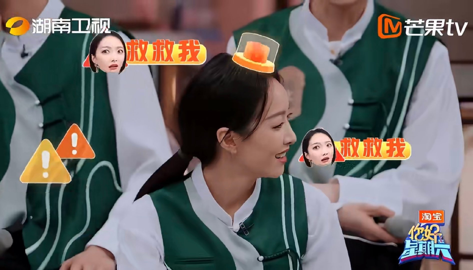 宋茜回头一看身后空无一人 你好星期六 射箭环节中,宋茜自信满满,欲带阵营冲分。结