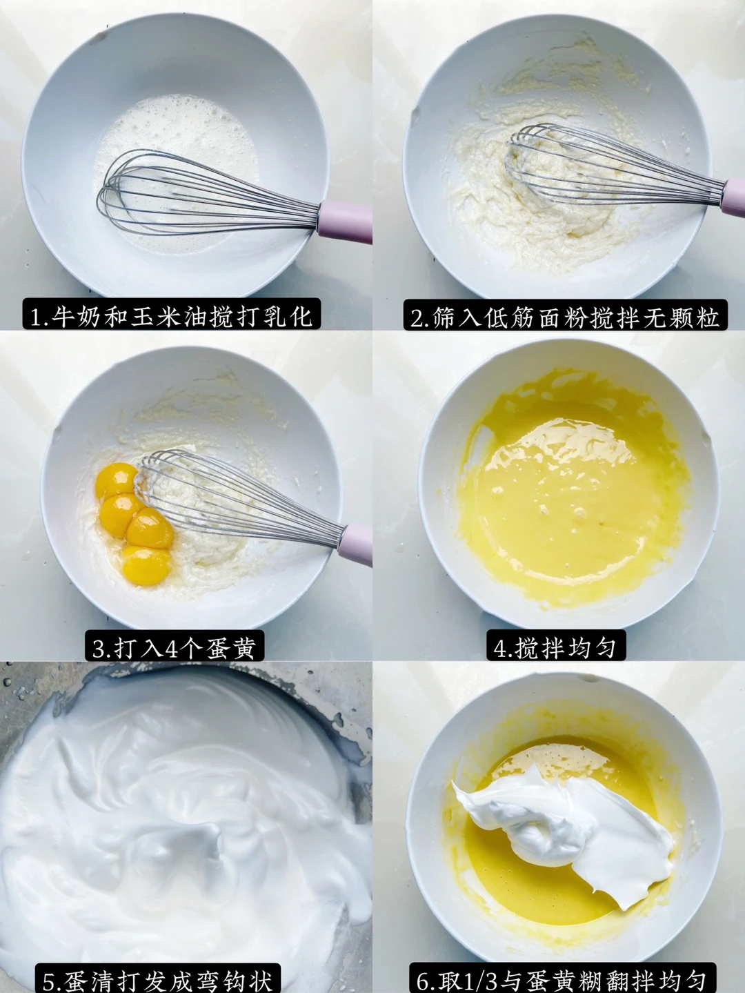 蛋糕胚:玉米油40g 细砂糖50g 牛奶40g 鸡蛋4个