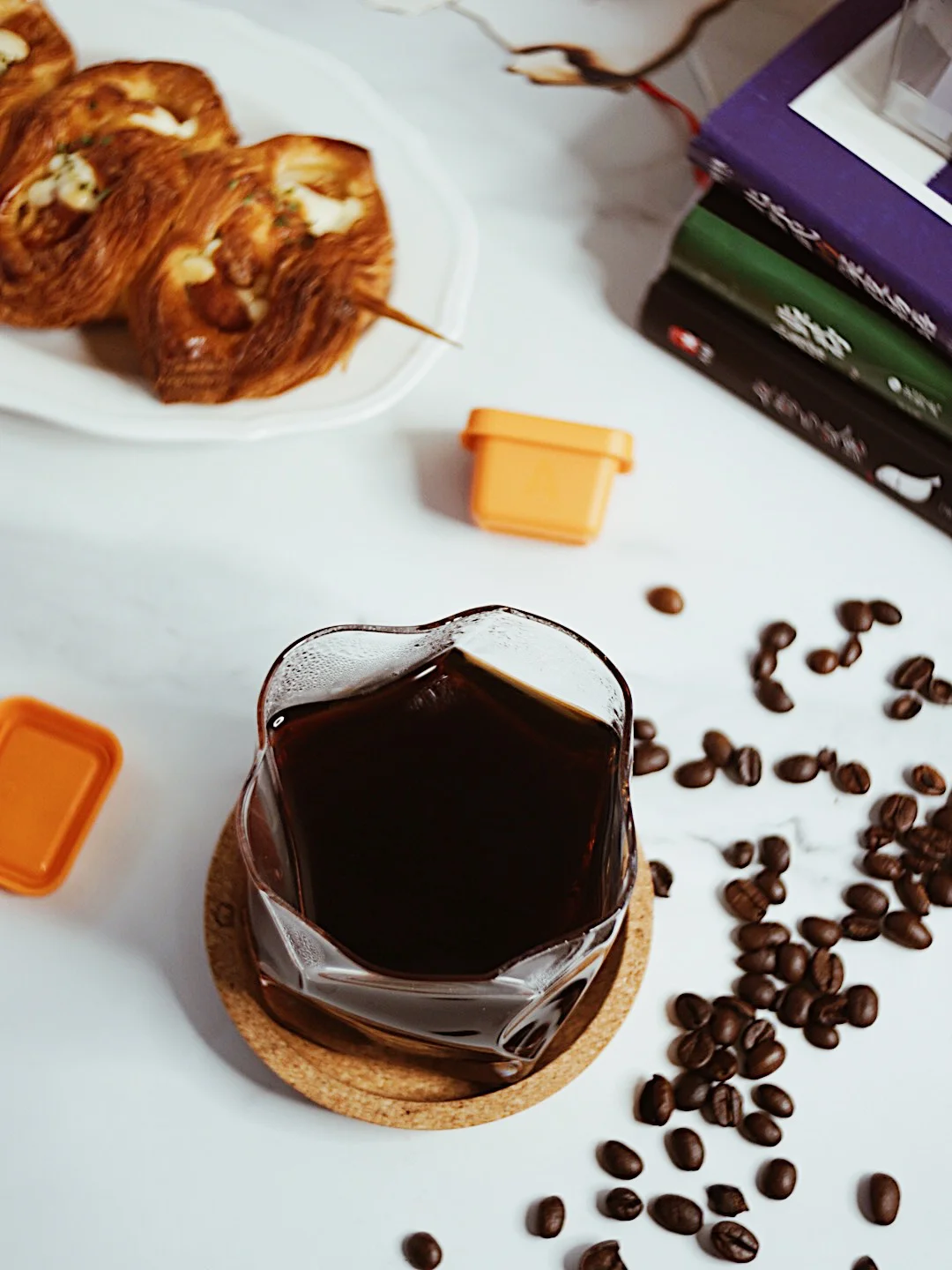 回家路上买了可颂和三明治🥐选了橙色的𝐀用了240ml的热水冲调了一杯有可可果与奶油风味的𝐣𝐢𝐧𝐠典美式。