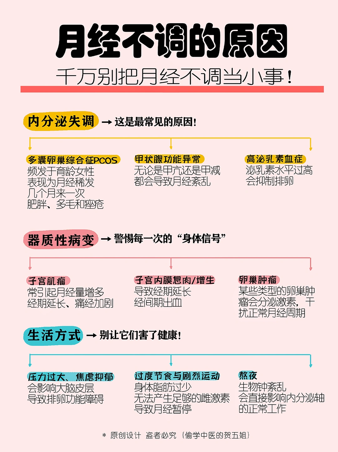 ❌多囊卵巢等:激素紊乱,月经“迷路”