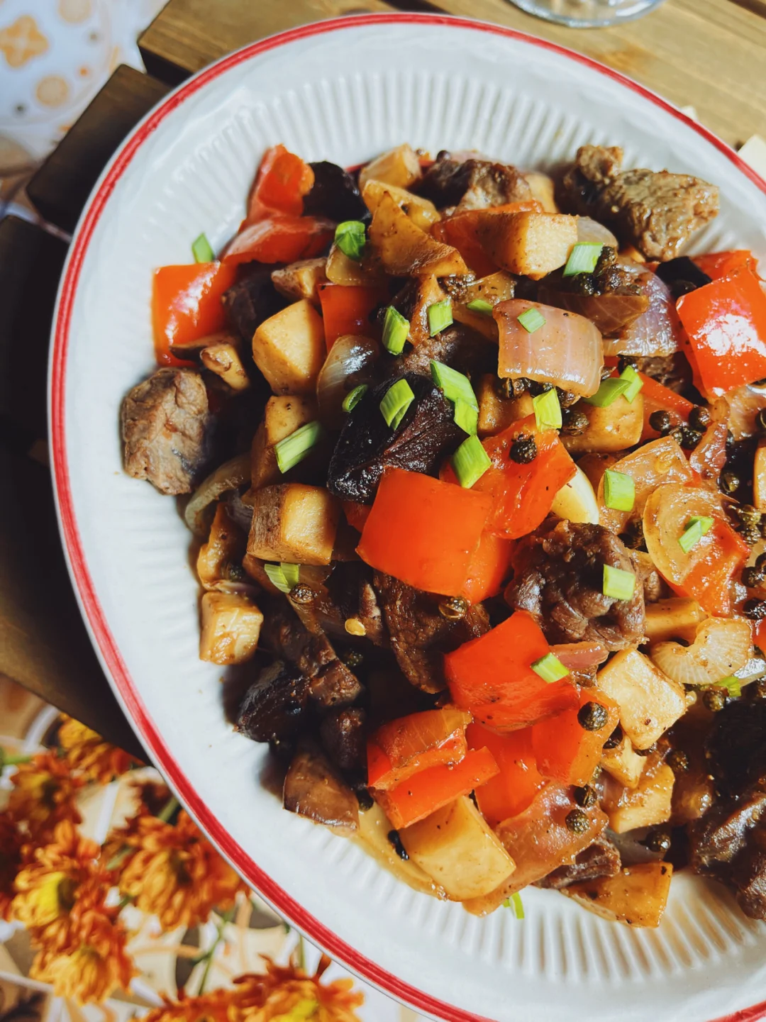今天做的这份黑蒜子牛肉粒,除了有健康的黑蒜子,还有滑嫩多汁的牛肉块。再配上辛香扑鼻的花椒提味。炒制的过程中,真的太香了。配菜用到的杏鲍菇、洋葱和红椒也是中餐里の绝配[哇R]于是我没忍住,边炒边吃