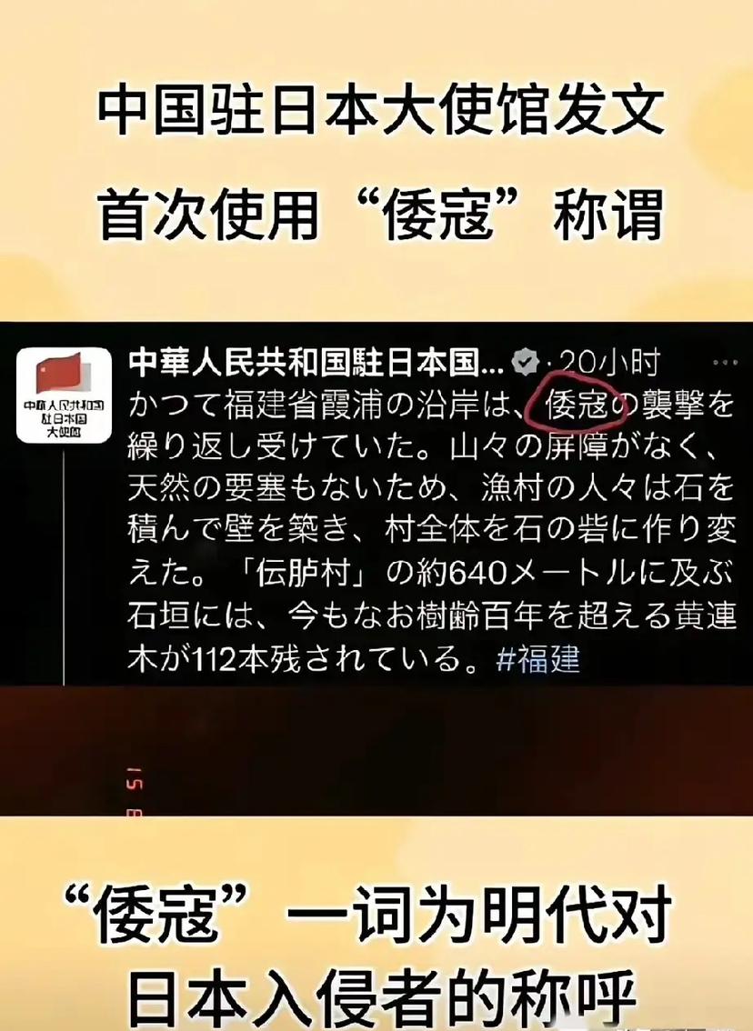 日本网友肯定坐不住了,因为我们驻日大使馆称日本为倭寇。这是几百年后我们再次官方提到倭寇二字。要知道第一次提到倭寇还是明朝时期,当时日本倭寇侵袭我国东南沿海地区,造成了我国东南沿海地区重大人员伤亡,财产损失这是对日本的蔑视, 可这哪里是单纯的蔑视?这两个字里,藏着的是刻进民族记忆的伤痛,是对日本近期嚣张行径的精准定性,更是毫不含糊的强硬警示——能让官方时隔数百年重启这个称谓,足见日本近期的操作有多越界,早已触碰了我们的底线。 明朝的倭寇之患,持续了近两百年,可不是小打小闹的骚扰。那些倭寇里,既有日本的浪人、武士,也有勾结外敌的奸商,他们驾着快船突袭沿海村落,烧杀抢掠无恶不作,冲进民宅抢粮食、夺财物,遇到反抗就拔刀杀人,甚至把村落烧成一片焦土。当时东南沿海的百姓,白天不敢出门劳作,夜里睡不安稳,不少家庭妻离子散、家破人亡,官府虽多次出兵围剿,却因倭寇行踪不定、凶狠残暴,付出了巨大代价才勉强平定,这段血泪史,早就把“倭寇”二字和“侵略、残暴”牢牢绑定,成了刻在民族骨血里的负面印记。 官方如今重提这个词,绝非无端旧事重提,而是日本近期的所作所为,活脱脱复刻了当年倭寇的侵略野心。这些年日本一边否认二战侵略罪行,篡改历史教科书,祭拜靖国神社里的战犯,一边加速扩军备战,提升军费预算,研发进攻性武器,还频频在台海问题上挑衅,鼓吹“台海有事即日本有事”,试图插手中国内政,甚至和美国联手搞军事演习,在东亚地区搅动风云,这和当年倭寇觊觎中国领土、肆意作乱的行径,本质上并无二致。 说白了,“倭寇”二字,是对日本当下野心的精准点破。它不是情绪化的蔑视,而是基于历史与现实的客观评判——日本若继续抱着军国主义野心不放,不断突破和平底线,不断挑衅周边国家,那它在国际社会的形象,就和当年烧杀抢掠的倭寇没什么区别。日本网友坐不住,说到底是怕这个称谓戳穿了他们试图掩盖的历史底色,怕外界看清其扩张图谋,更怕我们的强硬态度,打破他们仗着美国撑腰肆意挑衅的节奏。 要知道,我们从不是主动树敌的国家,一直秉持和平发展理念,可面对步步紧逼的挑衅,绝不会姑息纵容。当年能平定猖獗的倭寇,如今更有足够的实力和底气,应对任何针对我国主权的挑衅行为。重提“倭寇”,是提醒日本别好了伤疤忘了疼,别低估中国捍卫国家利益的决心;是警示其认清历史大势,收起侵略野心,否则只会重蹈覆辙,付出惨痛代价。 这个沉寂数百年的称谓再次出现,不是历史的复刻,而是现实的警醒。日本若还执迷不悟,继续在危险的道路上狂奔,只会让自己陷入更孤立的境地,到时候再后悔,可就晚了。 各位读者你们怎么看?欢迎在评论区讨论。