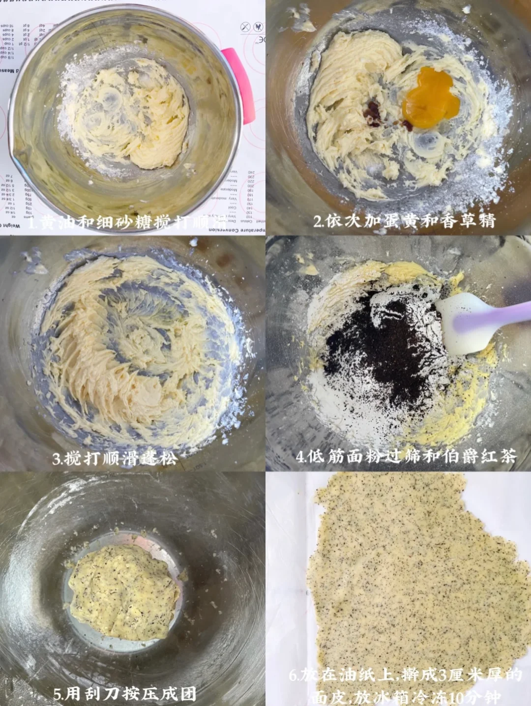 红茶酥饼:黄油100g 蛋黄1个 细砂糖50g 低筋面粉140g 伯爵红茶4g