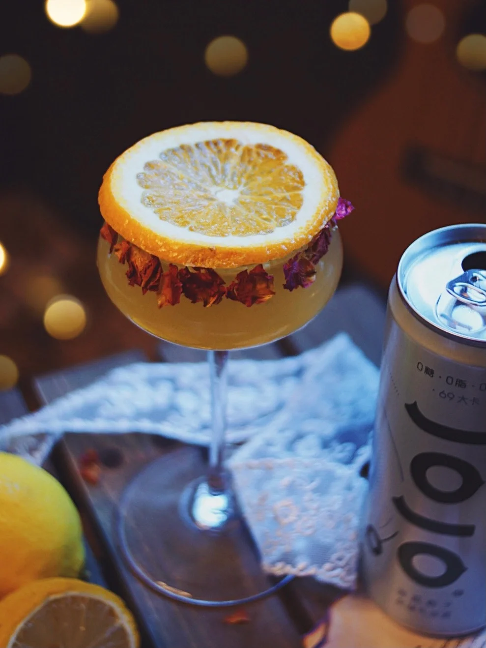 ▫️酒量不好,却喜欢回到家中,在摇曳的灯光下,自酌一杯🥂或是自调或是直饮一瓶带有饱满气泡的预调酒。