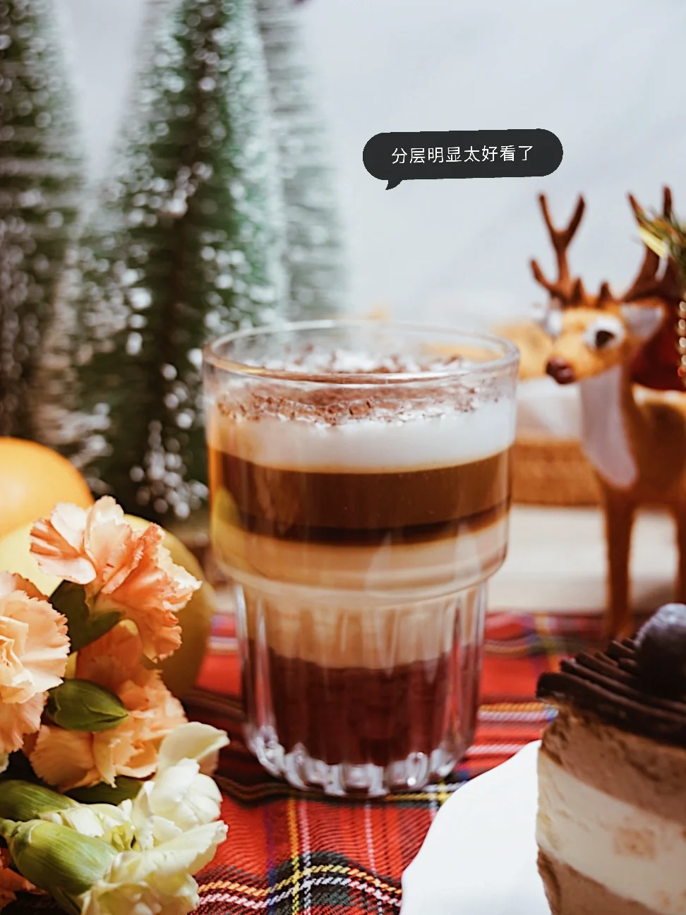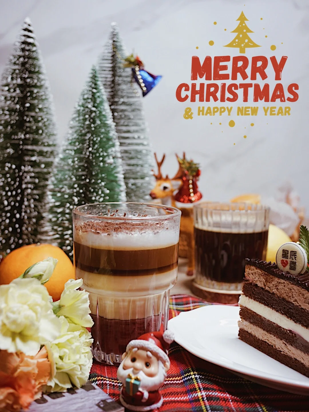 搭配巧克力蛋糕,一束鲜花💐制作两杯咖啡饮品。