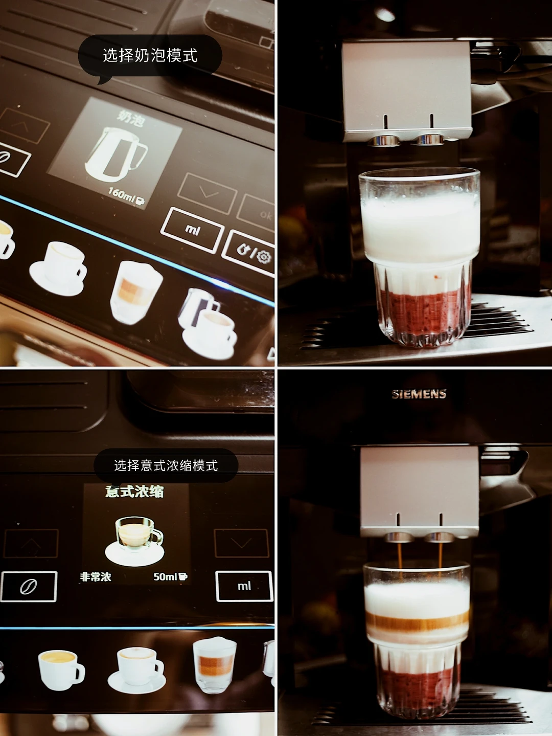 ▪️化身咖啡师的一下午,用的就是这台西门子 EQ.500 系列全自动咖啡机,采用的是iAroma智能萃取系统❗️使用时就发现,机子在运作的时候,压力足够、预热快、出水稳定。每一杯的咖啡都hin好的还原了咖啡豆原本的风味,而且油脂丰厚