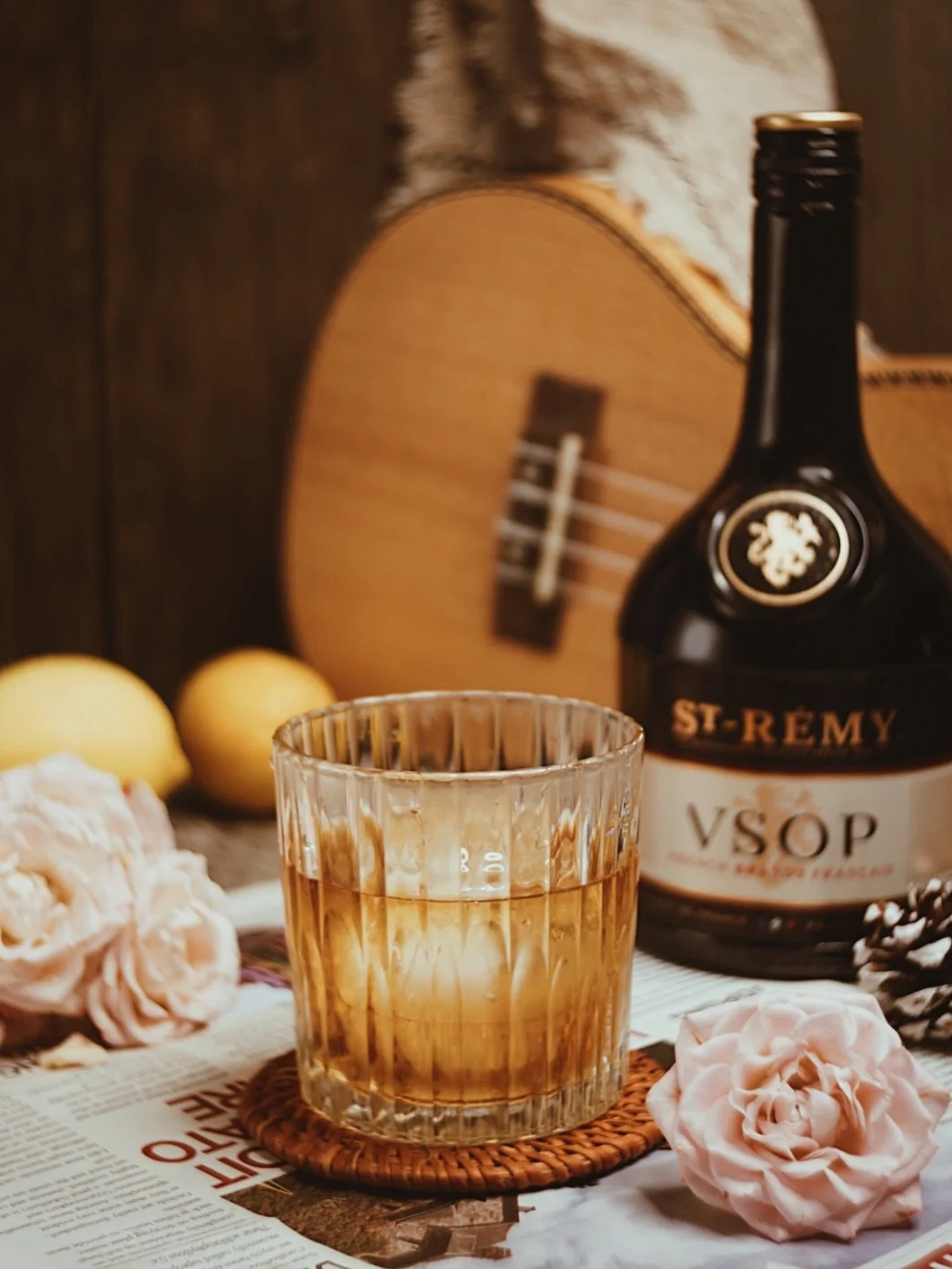 ▫️除此以外,也可以加冰直饮🧊打开瓶盖,可以闻到樱桃🍒野草莓的浓郁果香,把圣雷米vsop白兰地倒入杯中,整个酒体呈琥珀黄色。随后橡木香草的木质香气🪵沁入鼻尖。轻抿一口,圆润光滑的酒液顺喉而下,余韵伴着饱满的酒香。