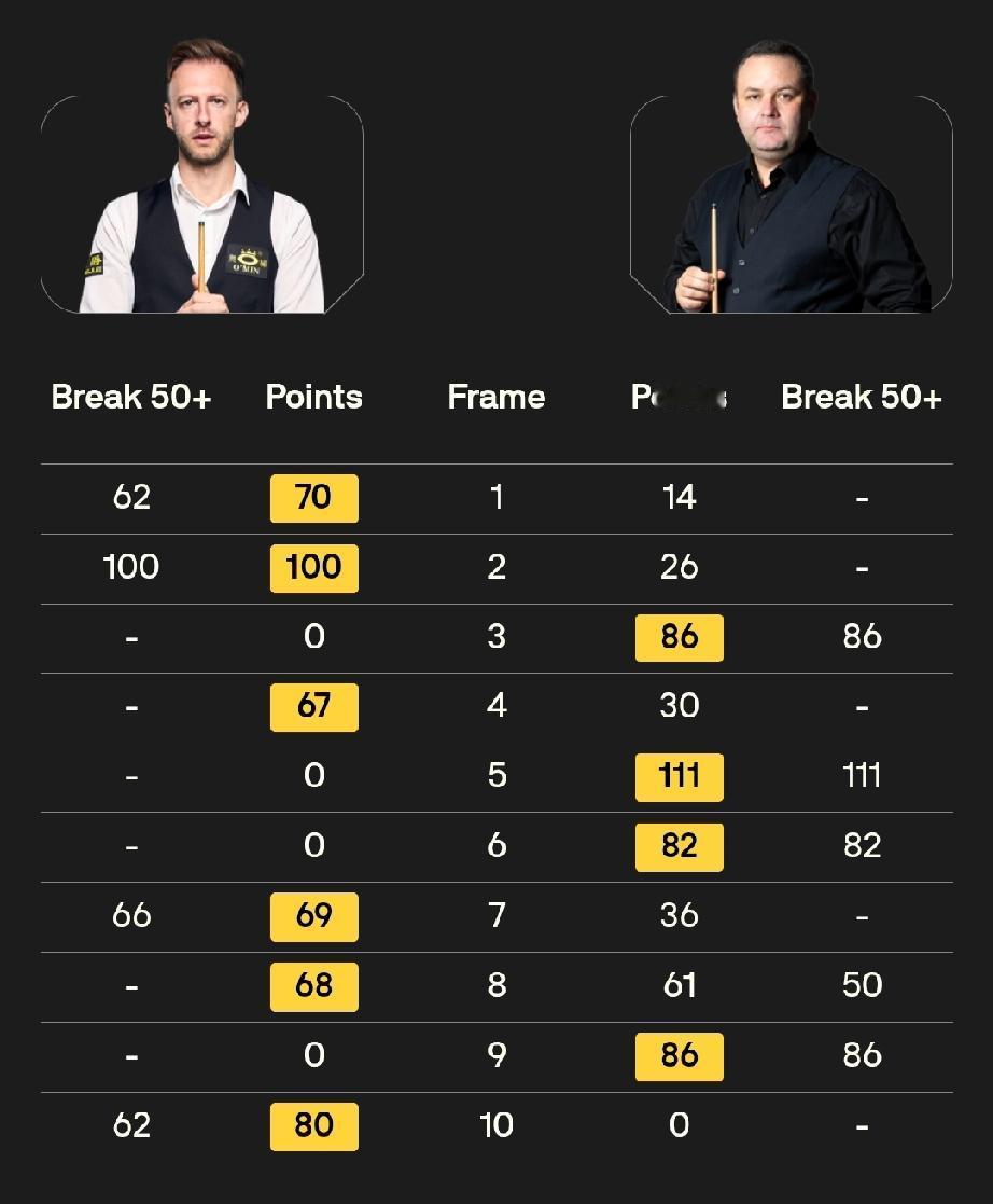 斯佳辉零封瑞恩·戴 贾德·特鲁姆普6-4击败斯蒂芬·马奎尔 11月30日凌晨,斯诺克英锦赛结束的前两场1/16决赛。 16号种子斯佳辉打出三杆50+,以6-0的比分零封瑞恩·戴第一个晋级16强。 头号种子贾德·特鲁姆普全场打出一杆破百和三杆50+,斯蒂芬·马奎尔打出一杆破百和四杆50+,最终特鲁姆普以6-4的比分战胜马奎尔晋级16强。 16进8轮次,斯佳辉对阵贾德·特鲁姆普。