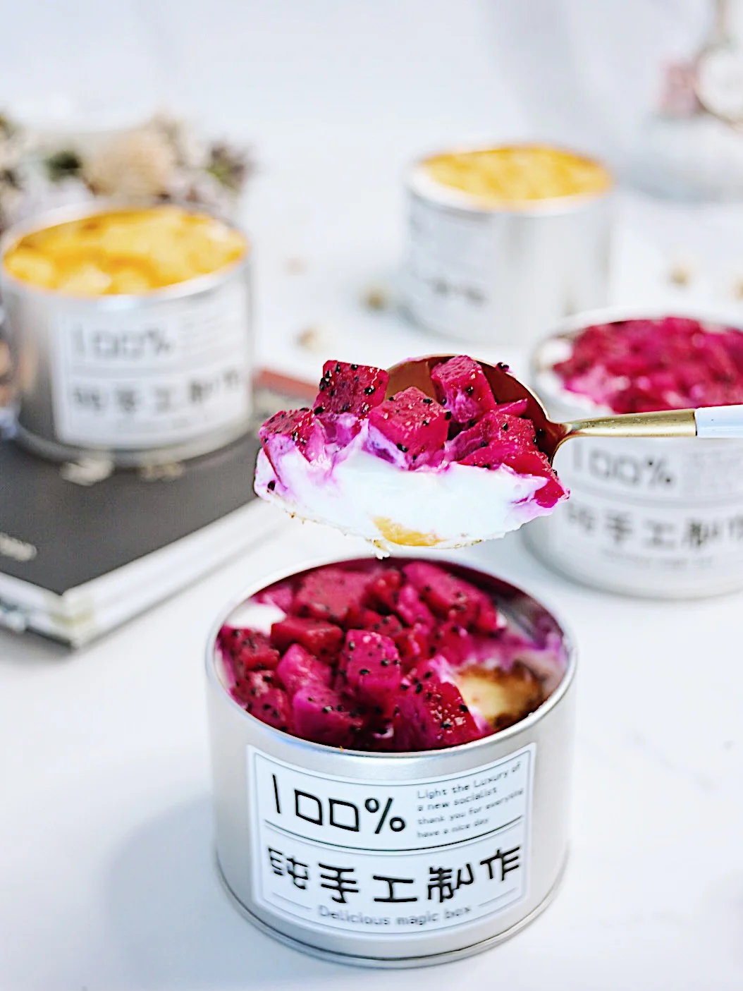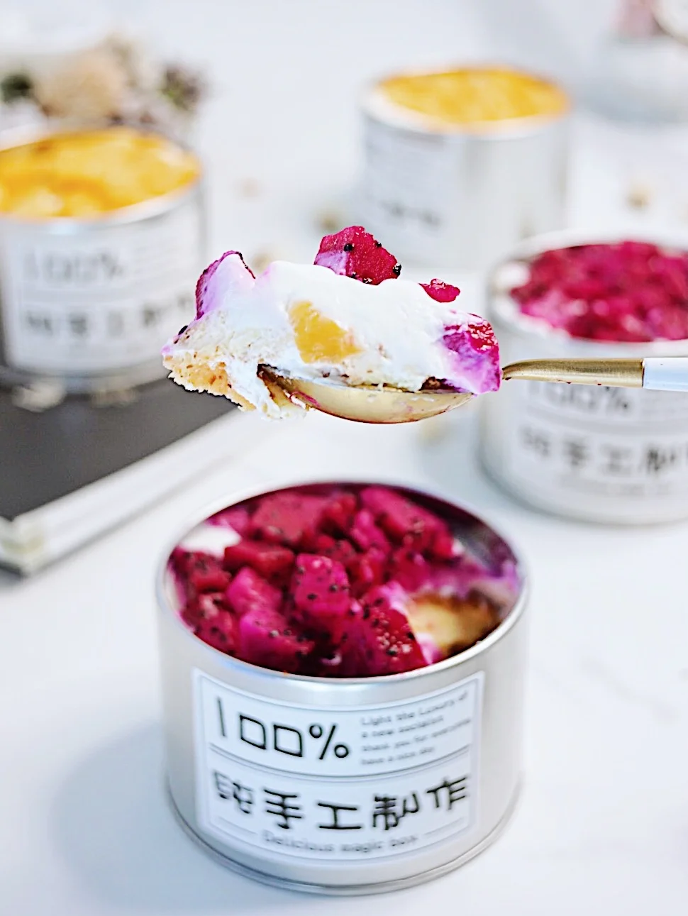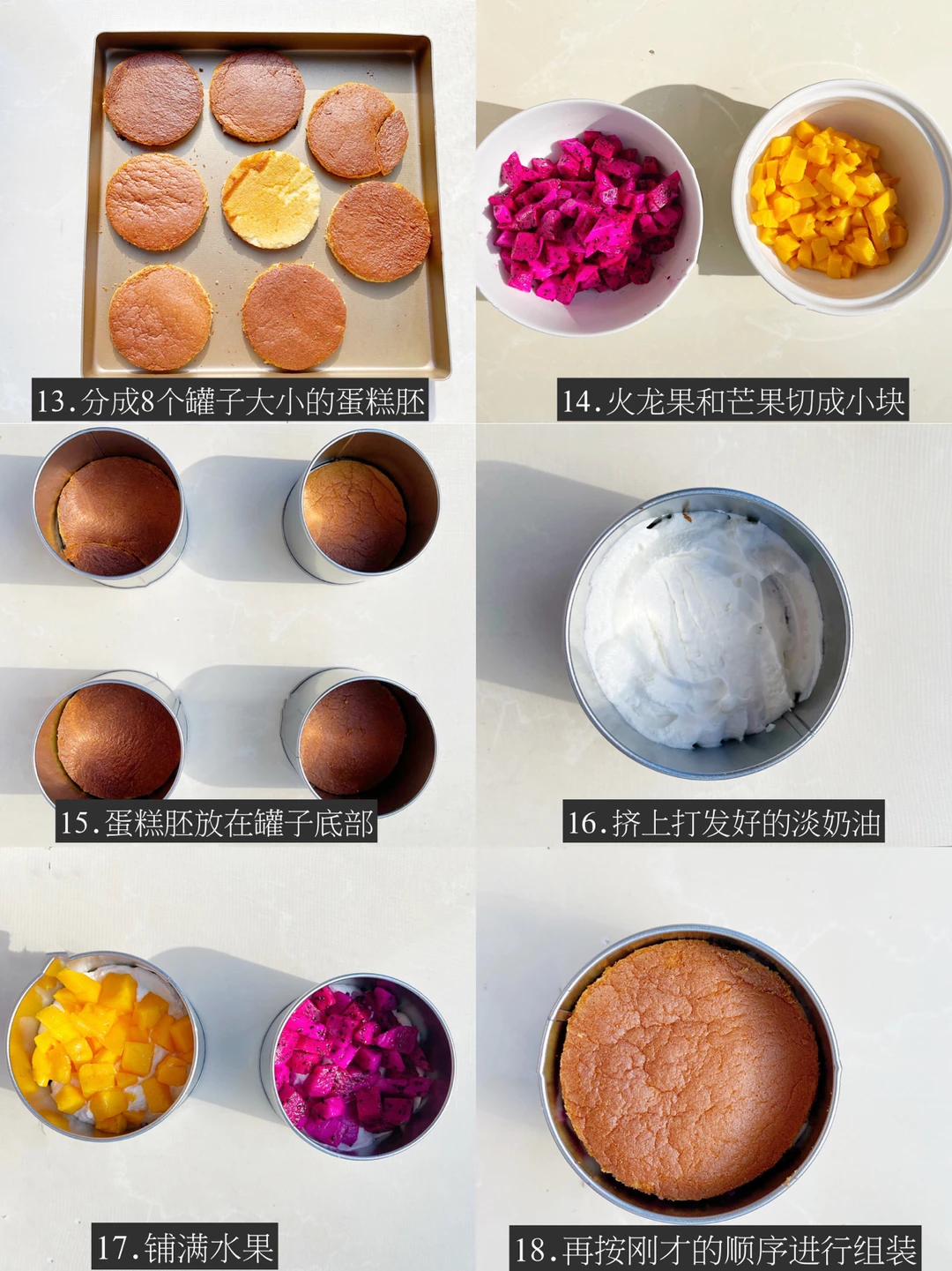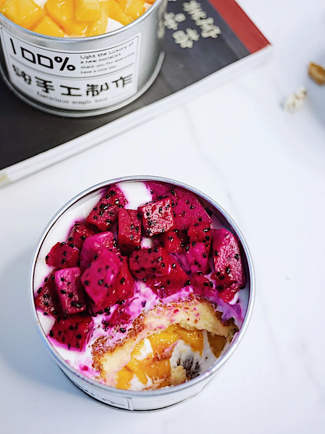 提前买了火龙果和芒果🥭用日式戚风胚,做了4盒水果罐子蛋糕,简约の𝐢𝐧𝐬风,各种奶油、水果、慕斯蛋糕都可以放进罐子里,难怪供不应求[萌萌哒R]