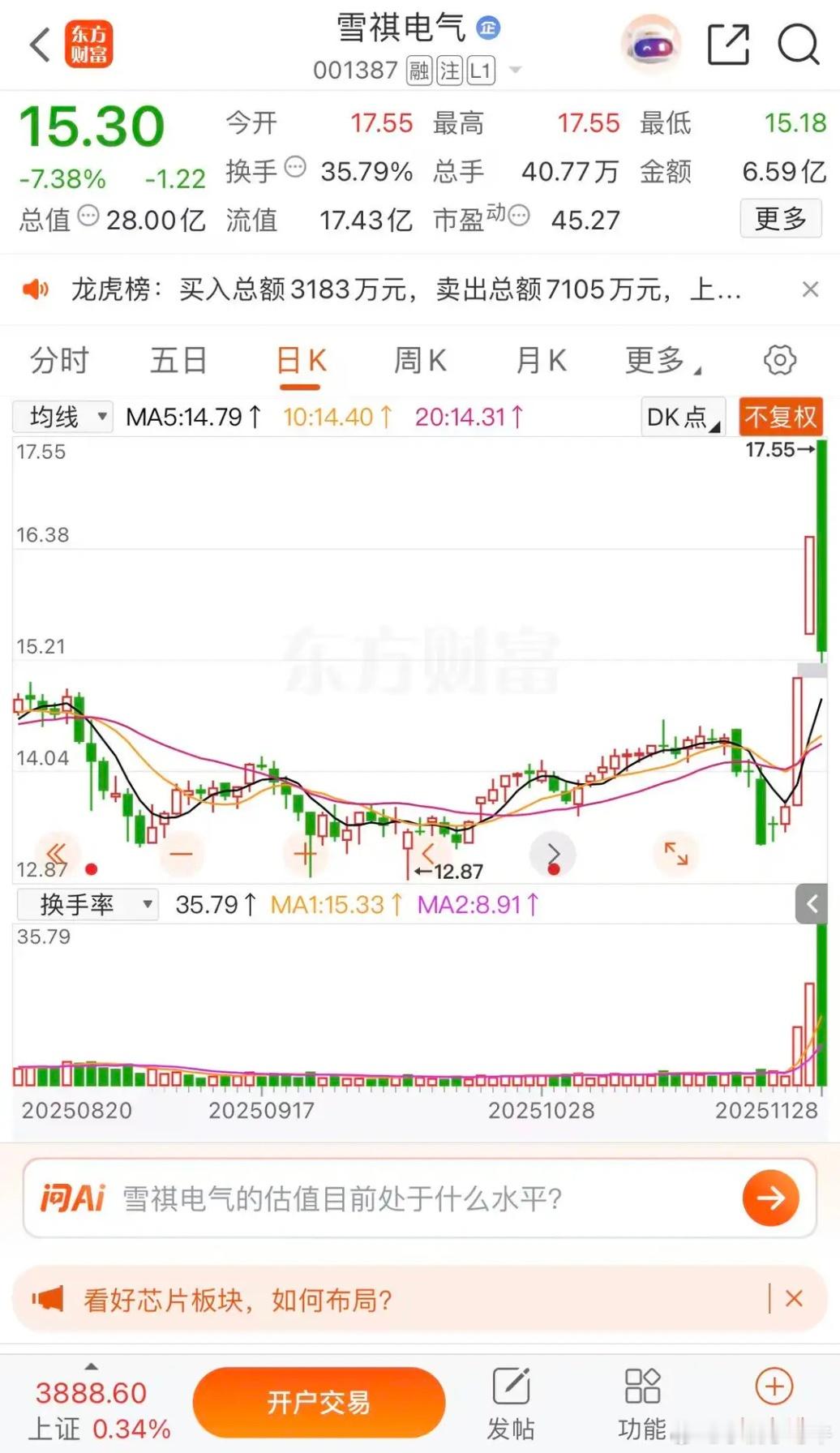 雪祺电气不反包,万通发展反包涨停雪祺电气跌幅7.38%,收盘报收15.30元每股,成交金额6.59亿元。不反包不反包万通发展跌幅7.38%,收盘报收12.92元每股,成交金额47.10亿元,反包涨停,反包涨停。虽然陈小群买入,但是周一还是会反包涨停板。突破前期高点16.12元每股。