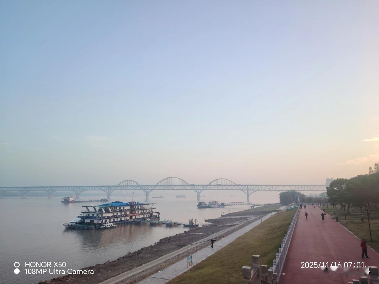 晒图笔记大赛11月16日长江岸边晨练赏日出