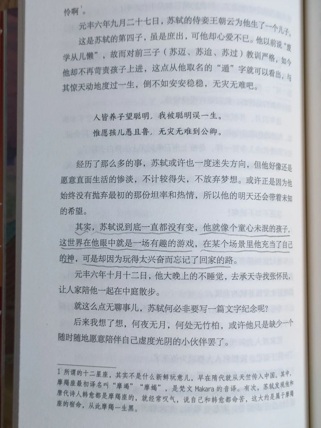 苏东坡一生大起大落,但在每一个时刻,他都带着阳光一样灿烂的笑容,因而每一个时刻都是闪闪发光的一刻。