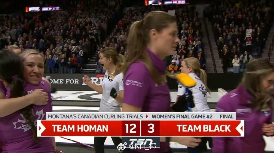 加拿大冰壶奥运选拔赛 Homan 12-3大比分赢下第二场比赛,队伍第二次、个人第三次代表加拿大🇨🇦出征冬奥会!恭喜Team Homan!