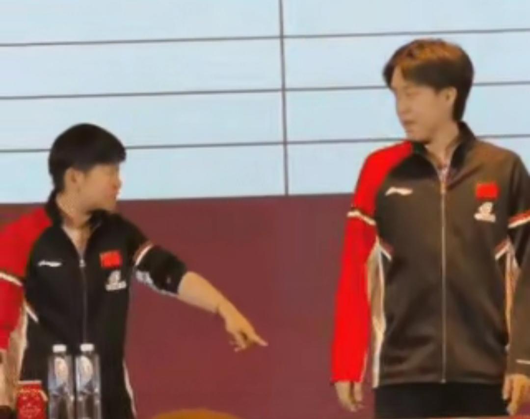 王楚钦站错位置了,站到小日子那边去了,孙颖莎提醒他站过来再正常不过了。