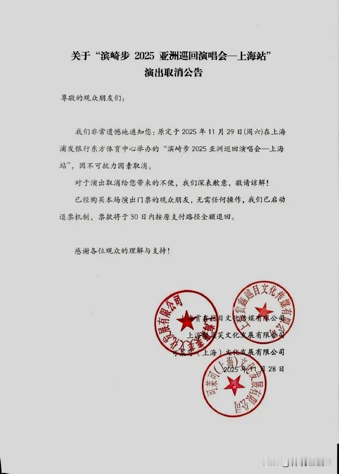 没有观众看,她独自在舞台上练! 网上传来消息,原定于2025年11月29日(周六)在上海浦发银行东方体育中心举办的“滨崎步2025亚洲巡回演唱会﹣上海站”,因不可抗力因素被取消之后,滨崎步竟然选择独自登上舞台演出,她对着14000个空座位不但唱满了全场,并且还全程录制…… 奇葩呀!见过大胆的,没有见过这么不要脸的,确实不愧从日子来的歌星。没有观众看,她自己在舞台上练!这么做有什么意思呢? 不过,也有网友说,那个国家的人心眼特别多,她之所以这么做,是有一定的目的的。似乎在表白,这样既遵守合约,又可以给粉丝一个交代了。