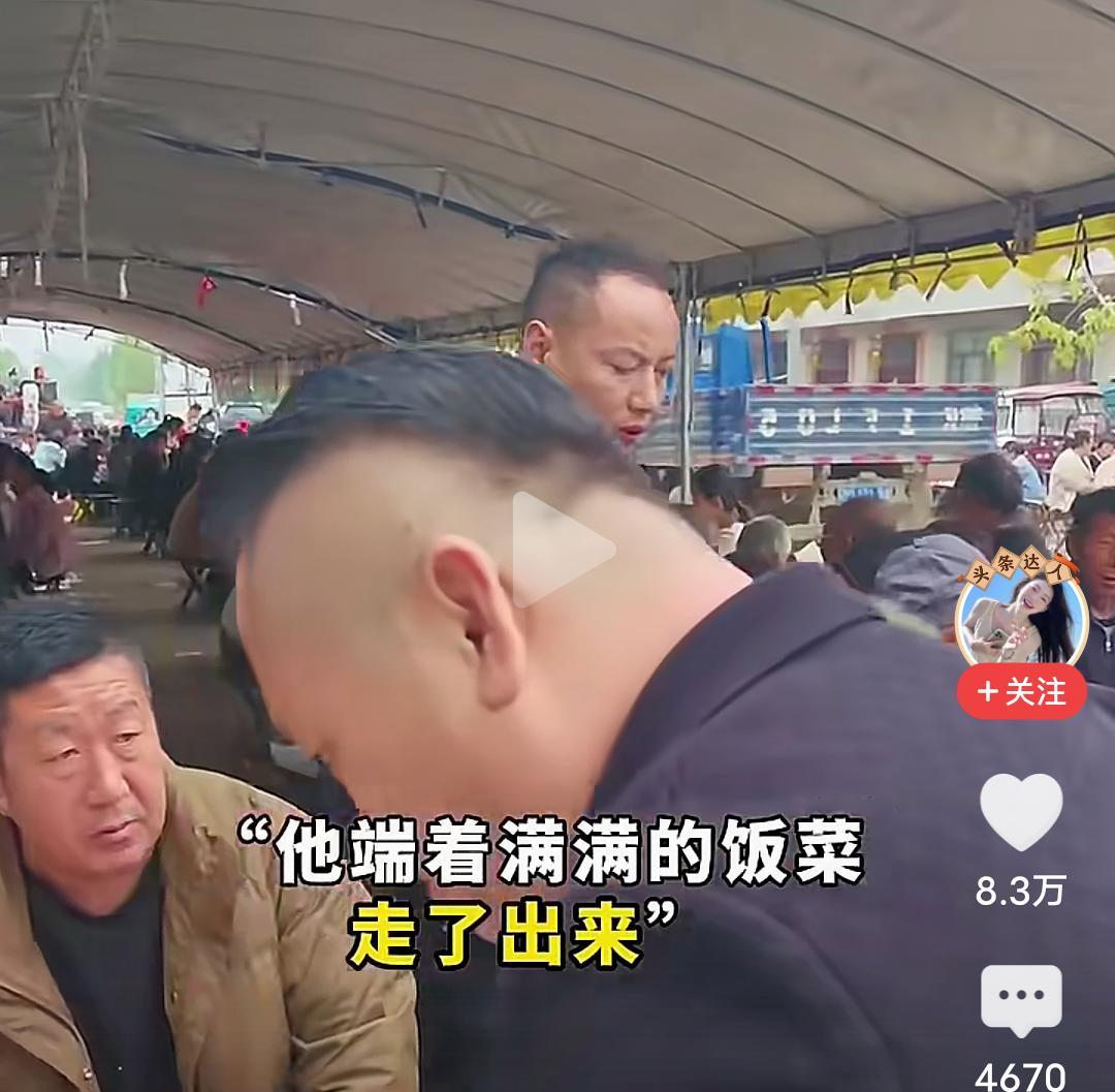 大哥,好人!点赞! 在农村的宴席上,这位大哥在菜上完后,往盘子里夹出