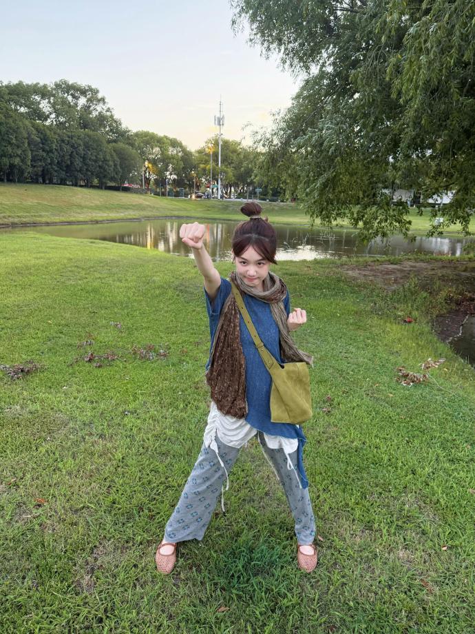 吴艳妮在成都穿着短裤大腿看起来很粗壮,表情自信又张扬