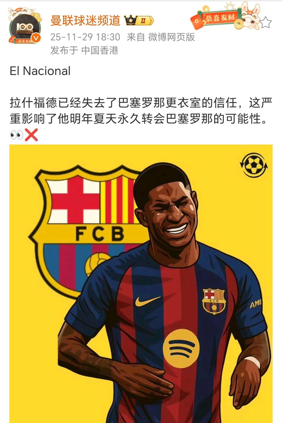 拉什福德和巴萨的蜜月期已经过了? 外网说他夏天重回曼联,不可能在西甲踢球了。 这真是短暂的蜜月,还是英超好踢一点。[大金牙]