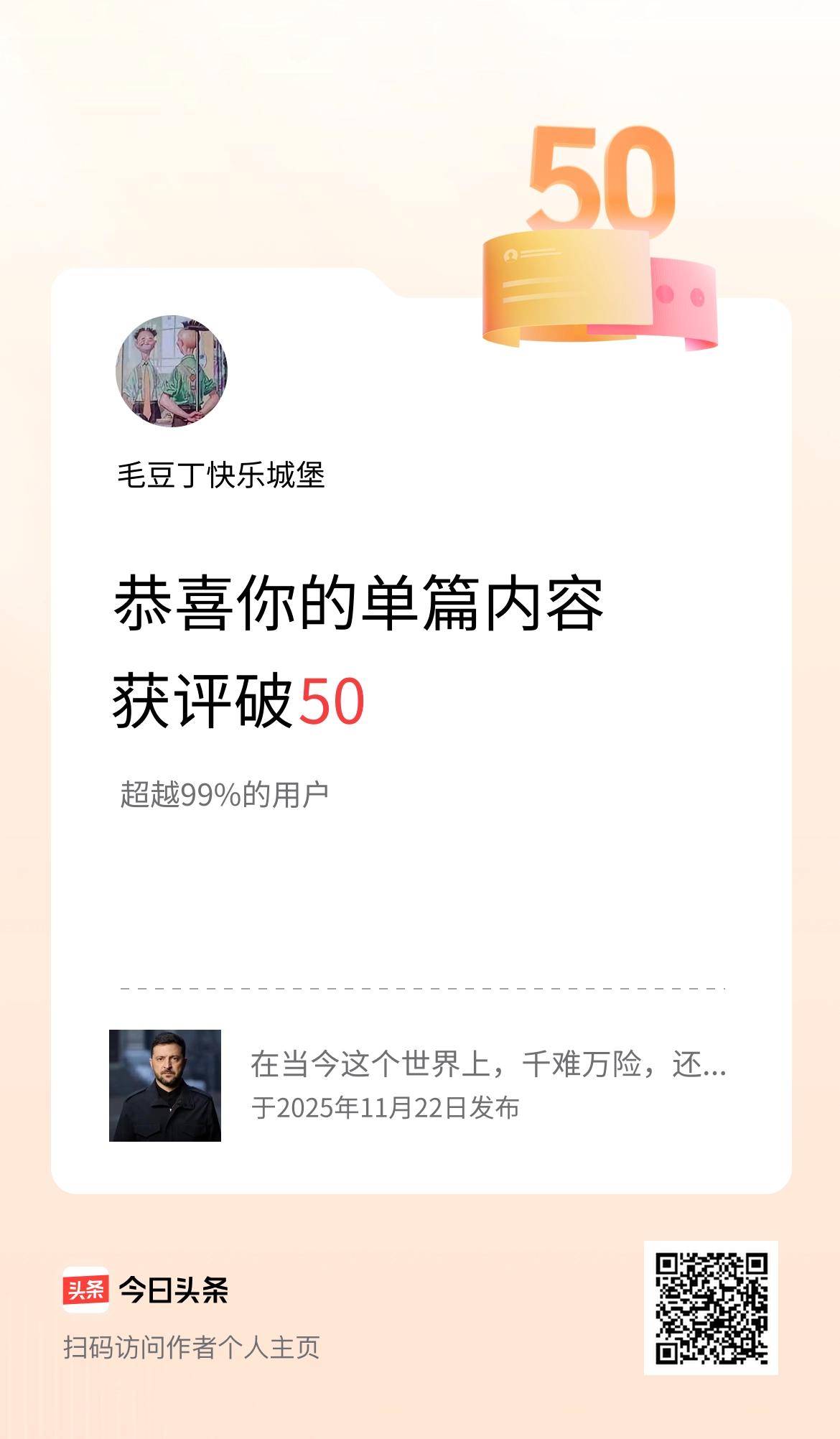 单篇内容获评论量破50啦!
