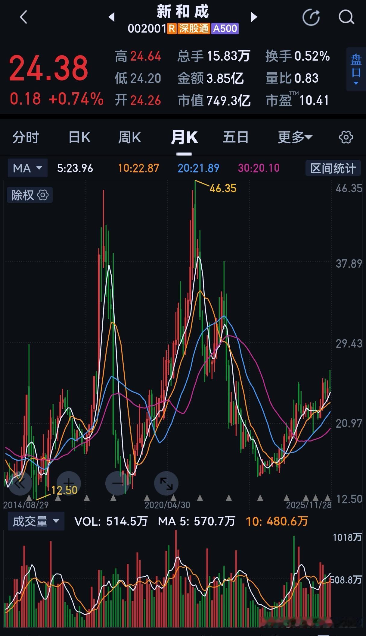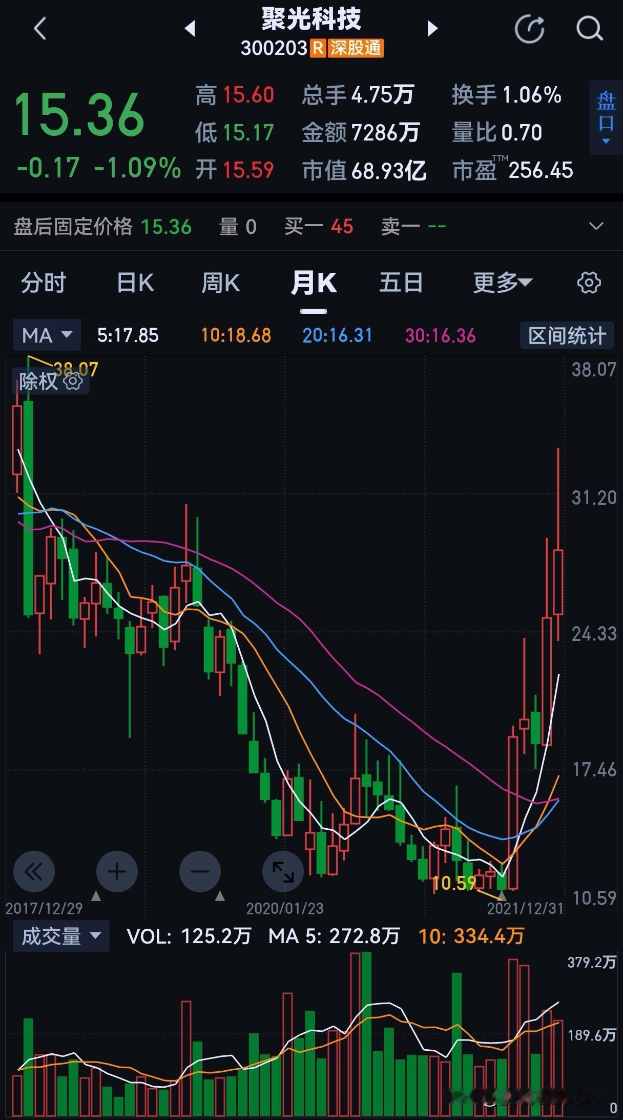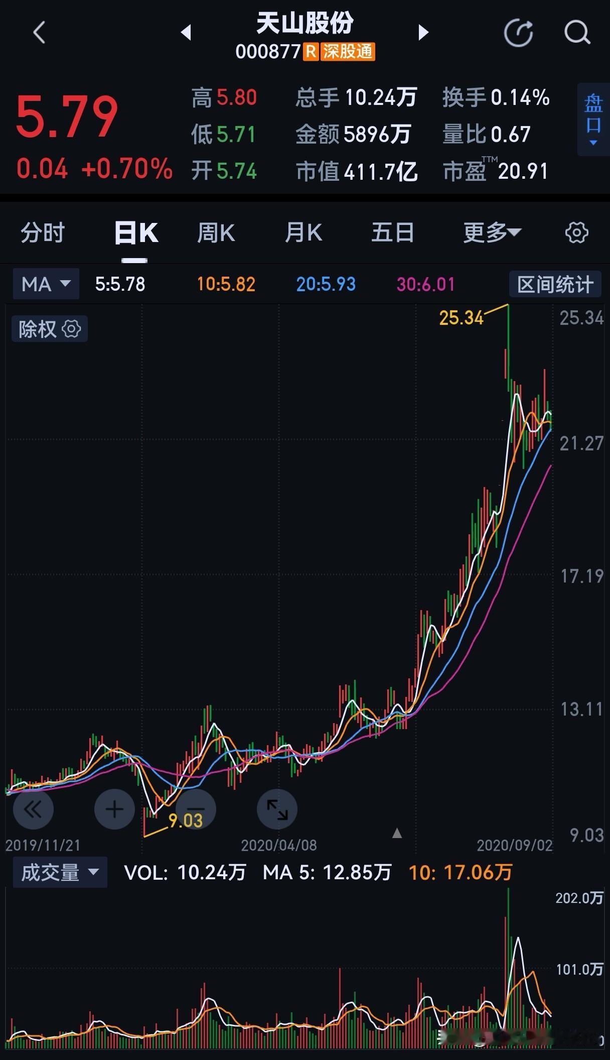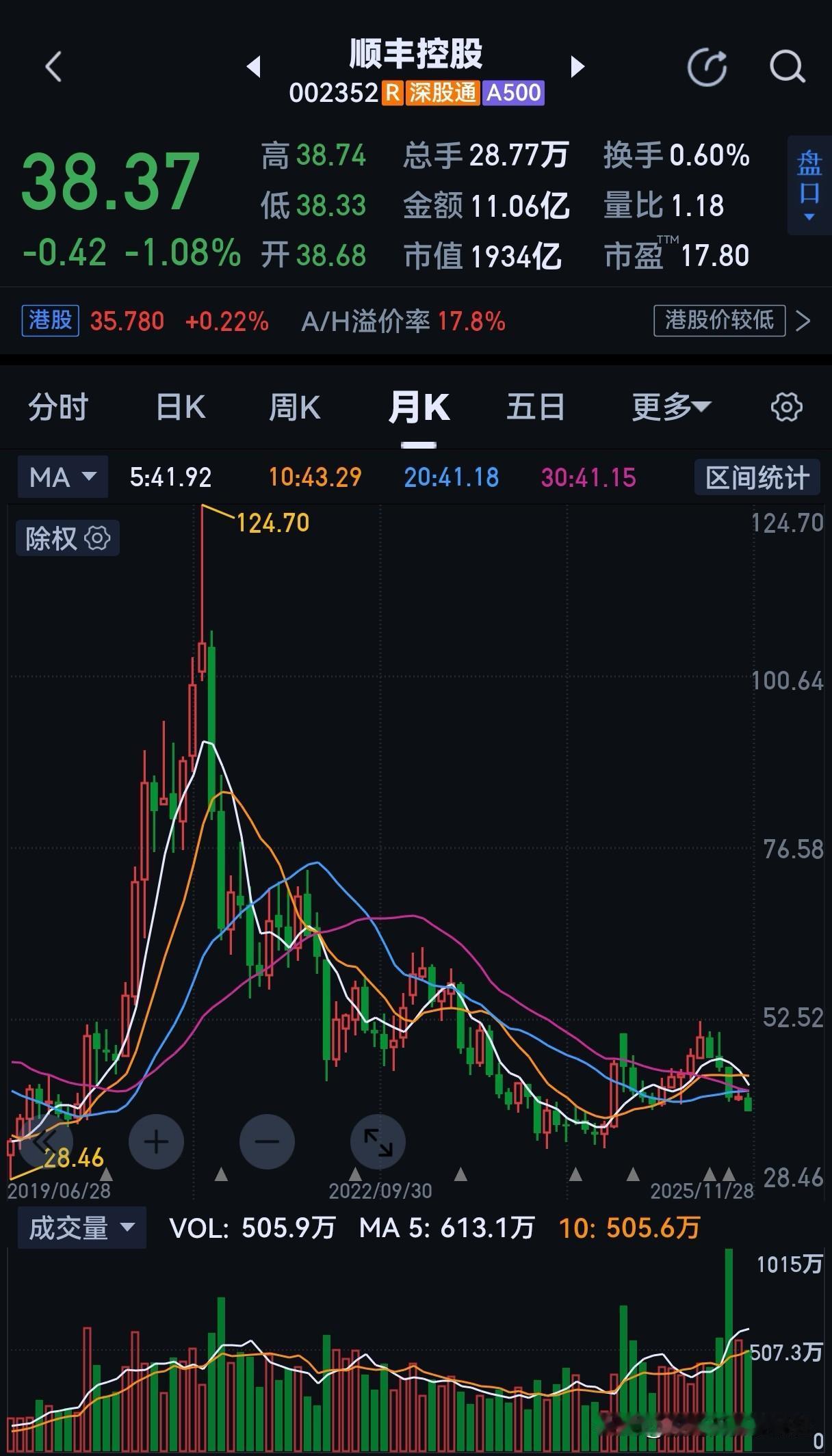 炒股18年,我的账户之最: 1、最幸运的股票:南方航空 作为一个传统的大国企,经常净利润亏损,但这完全不妨碍它成为我的幸运之星。翻看账户,总计建仓8次,8次都赢利。最多盈利25W,最少一次盈利5K。 周期性极强的南航,每次5元左右就是底部,持有之后时间长短不一,牛市末期开始上涨,一个月时间翻倍。 2、亏损最大的股票:顺丰控股 去年10月份45元买入的顺丰,原以为从124点跌下来够便宜了,没想到持续下跌,到了今年1月份股价来到了38元。一次性买入了2W股,实在无法忍受,清仓出局,亏了14W。到了6月份,顺丰最高涨到51元,不过最近又来到我买的成本价38元附近。但是,一朝被蛇咬十年怕井绳,我已经没有再买的勇气! 3、盈利最大的股票:天山股份 2019年7月,7元买入了5W股天山股份,目标价18元,中间未曾加减过任何仓位。直到2020年8月,股价来到18元全部卖出,盈利55W。尽管该股最终因为合并重组将股价最高推至25元,但我能够拿到目标价已很知足。 4、持有时间最长的股票:新和成 2019年2月,以15元价格半仓买入了新和成,直到目前24元未曾卖出,中间也曾做过短差。2021年3月该股股价最高来到46元,账户盈利300W,但还是未曾卖出。 新和成作为世界上维生素龙头公司,业绩稳定每年高速增长,分红之王,作为我价值投资的最心仪之选,过去不卖,将来很多年也不会卖。 5、最意难平的股票:聚光科技 2019年8月,20元附近买入了4W股,到了2021年4月,伴随着业绩爆雷,董事长触犯环保法等等利空下,股价跌到了12元。实在害怕的不得了,全部割肉出局,合计亏了30W。 就在我为随后的10月股价跌到10元附近庆幸的时候,接下来的走势让我万分后悔。一年之后的2022年10月,该股最高涨到43元,相较于底部10.59元,涨幅近4倍之多。回头再看,如果我没有卖出,成本价下降到16元的此股最终会赢利接近100W,然而我却亏损30万提前出局了。 以上就是本人炒股18年来的5个之最:最幸运的、亏损最大的、赢利最大的、持有时间最长的、最意难平的。屏幕前炒股的你,有没有一只股票让你刻骨铭心?请分享出来! 文末声明:文中所涉及个股只是个人投资记录分享,不构成任何投资建议。股市有风险,投资需谨慎! 股市第一线