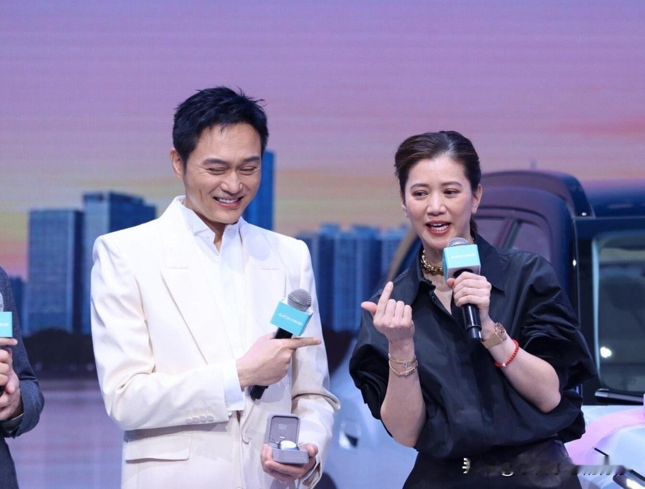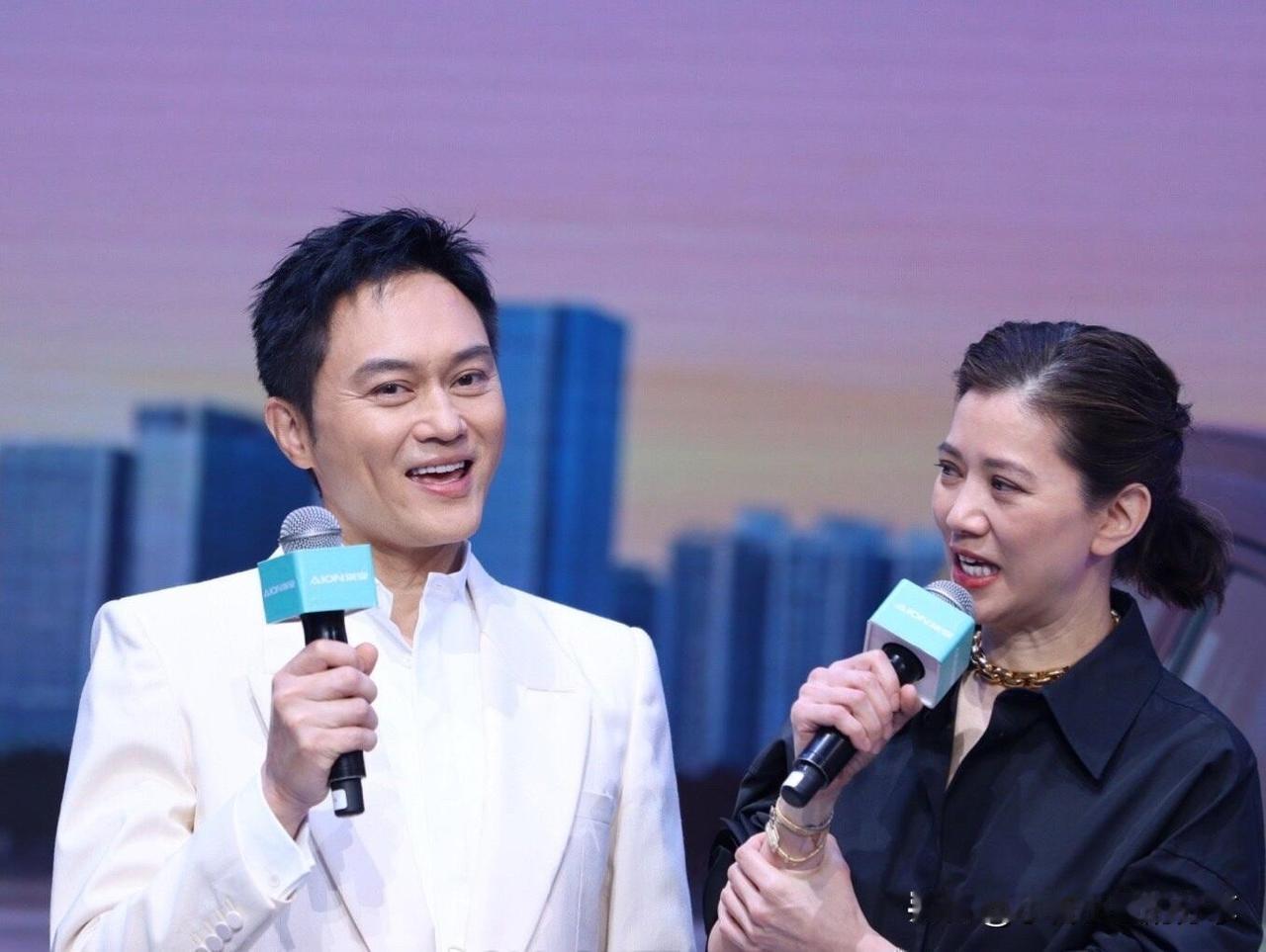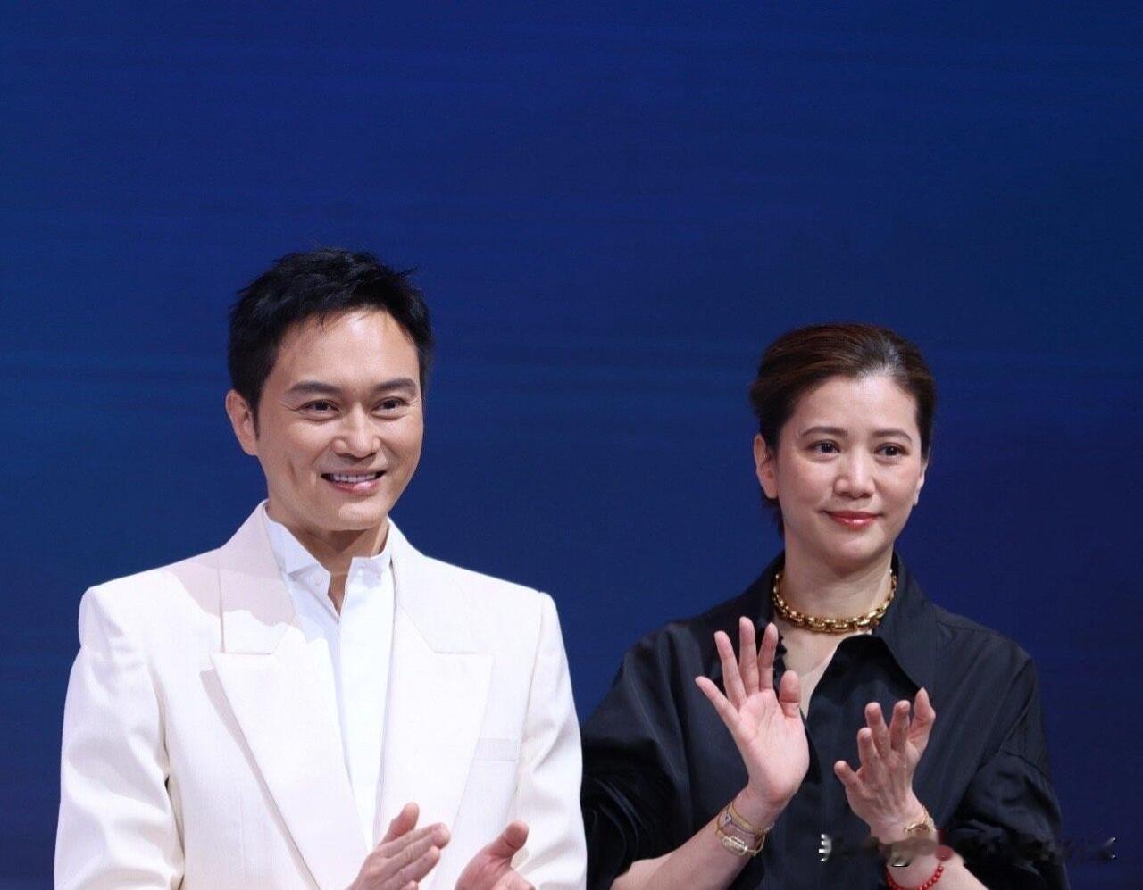 张智霖和老婆袁咏仪合影,两个人在台上甜蜜互动,都是50多岁的人了,还这么幽默可爱,袁咏仪比了一个心,很般配,郎才女貌。 虽然他们脸上都有皱纹和岁月痕迹,但看上去比较自然,不僵硬,没有医美的痕迹,耐看养眼。