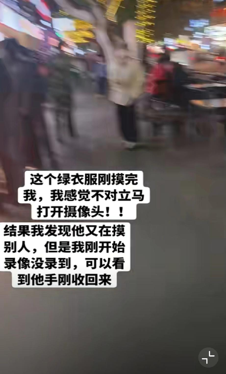 11月29日,网友反映,湖南衡阳师范学院西校区附近,一绿衣男子专门往年轻女生身边碰靠,她说自己被摸了可惜没录到。其实没录到也没关系到处都是监控,要敢于报案,不能让他一次一次得逞。