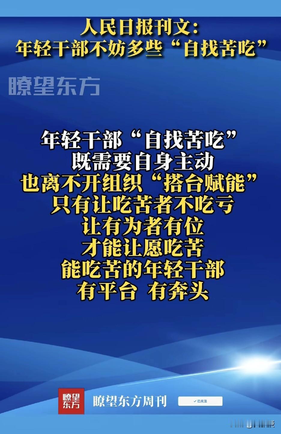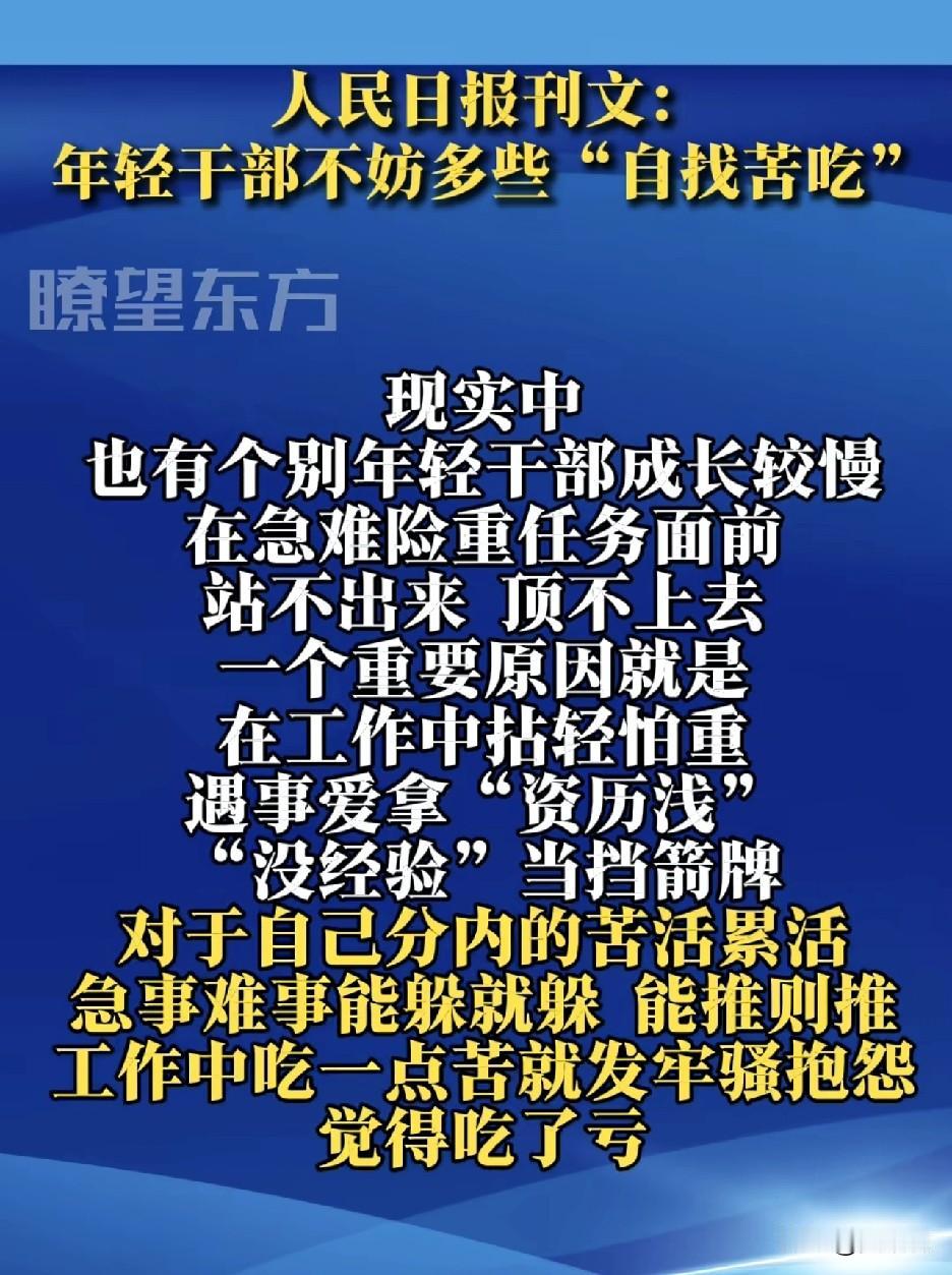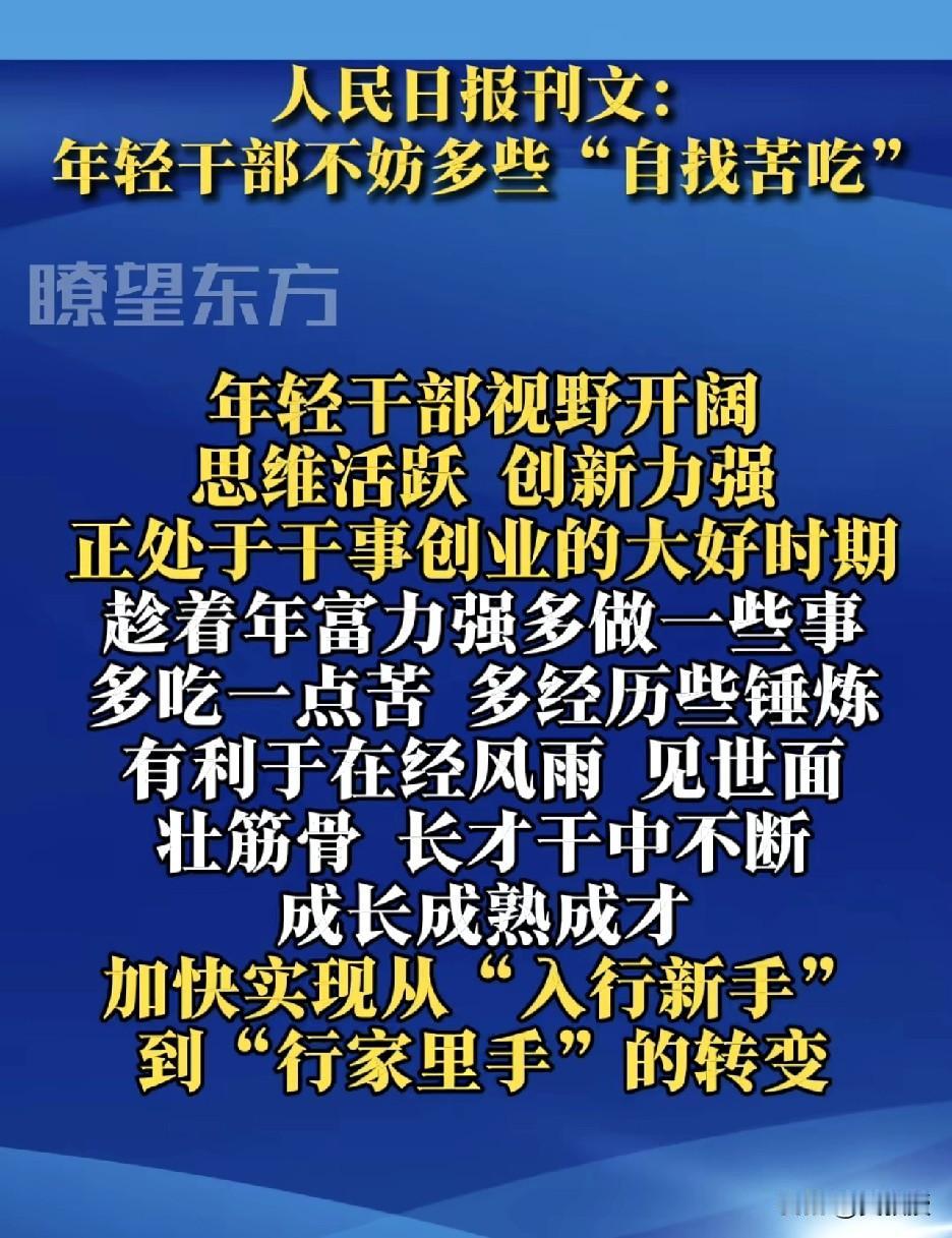 人民日报刊文 “年轻干部不妨多些自找苦吃”