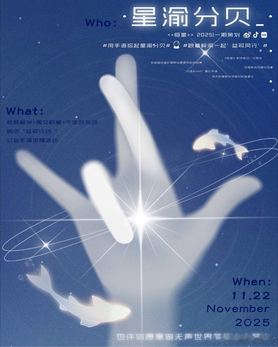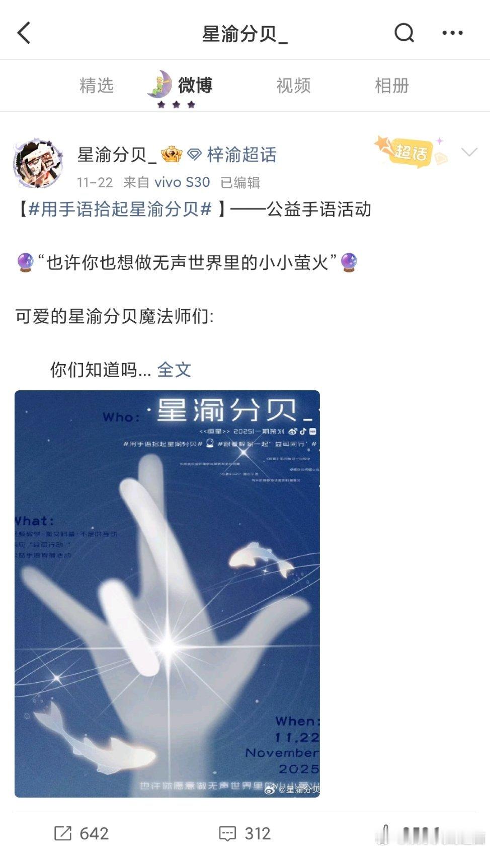 梓渝 粉丝受到梓渝发起的“益耳”公益行动影响,也跟随脚步发起了【用手语拾起星渝分贝 】——公益手语活动用真心和行动诠释了偶像影响粉丝的积极正面能量,特别好的策划活动,手语宣传真的是一件很有意义的事情。