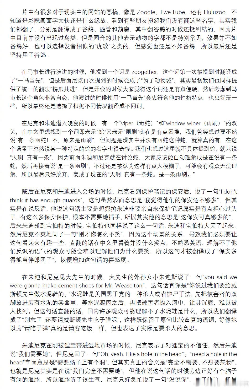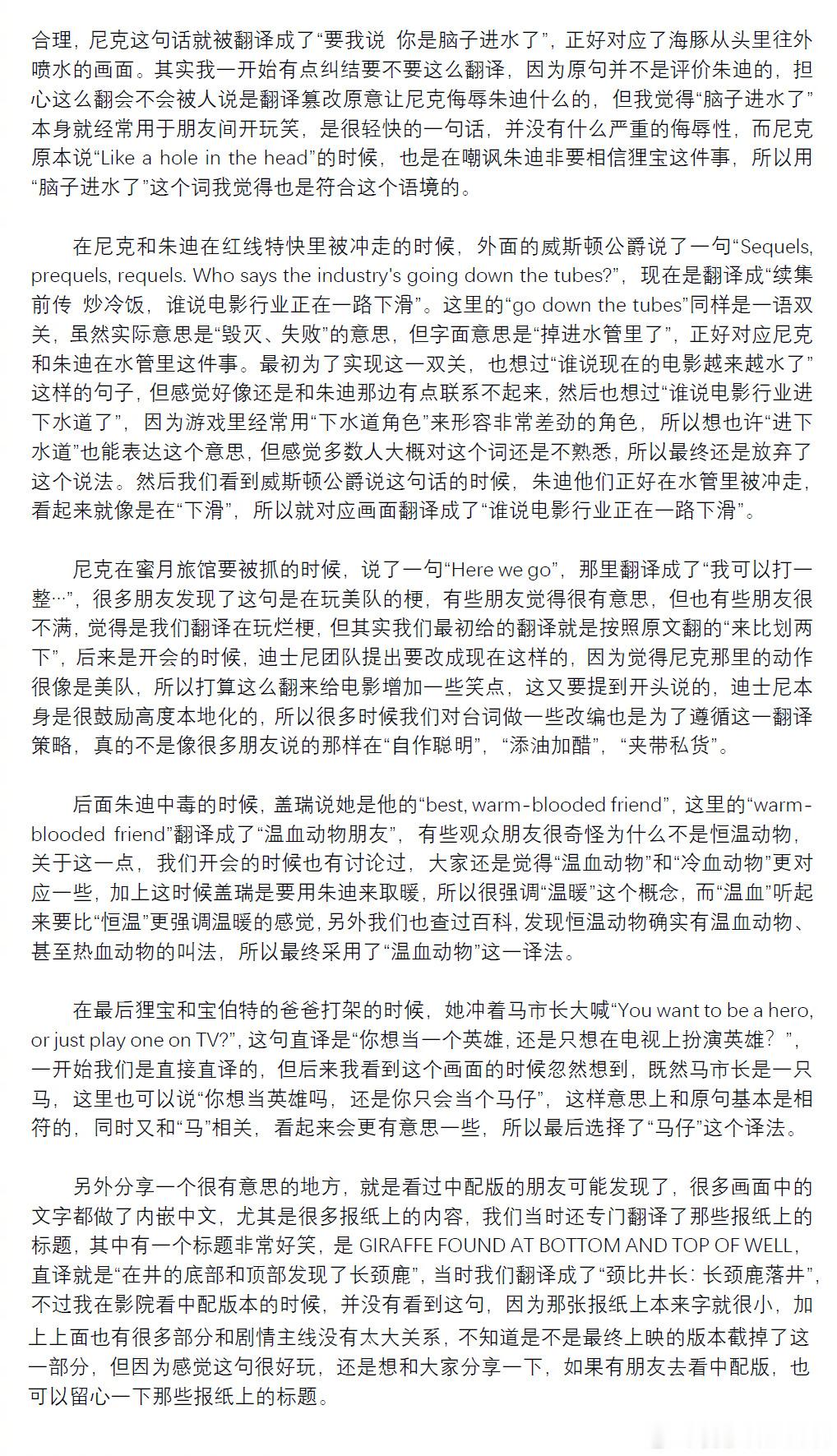 疯狂动物城2译者回应争议疯狂动物城2原来是这么翻译的 《疯狂动物城2》怎么翻译才能在准确的基础上,既好笑又好懂?在译者的幕后长文里,不仅有对观众热议的翻译问题的详解,也能看到译者如何和团队一起“拆解”笑点,再重新搭建中文表达!喜欢研究字幕的朋友别错过👇二次元银幕之下
