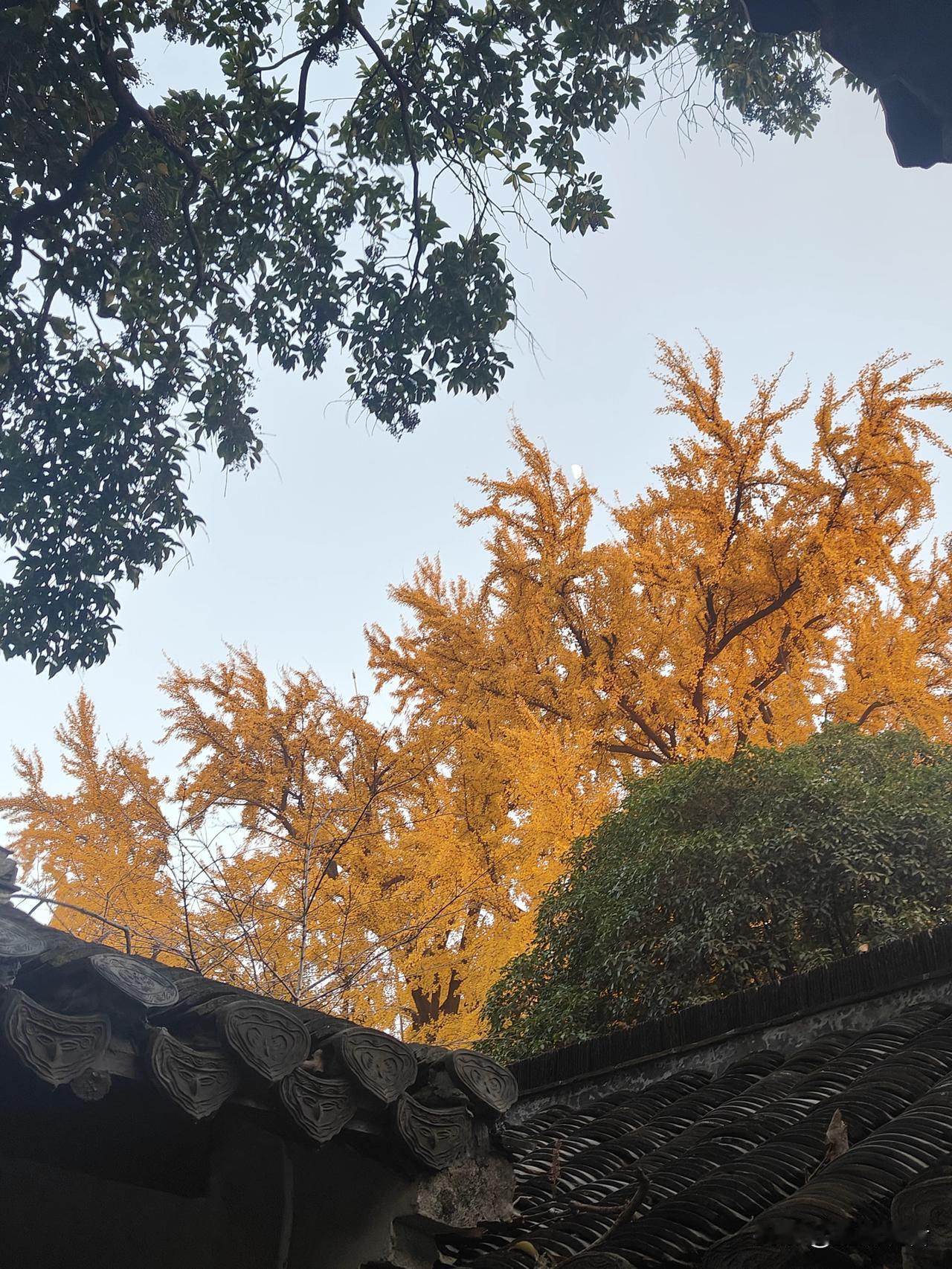 扬州史公祠明末古银杏,树龄近400年,11下旬至12上旬黄叶铺地,入选江苏最美秋色,银杏季活动引客打卡。