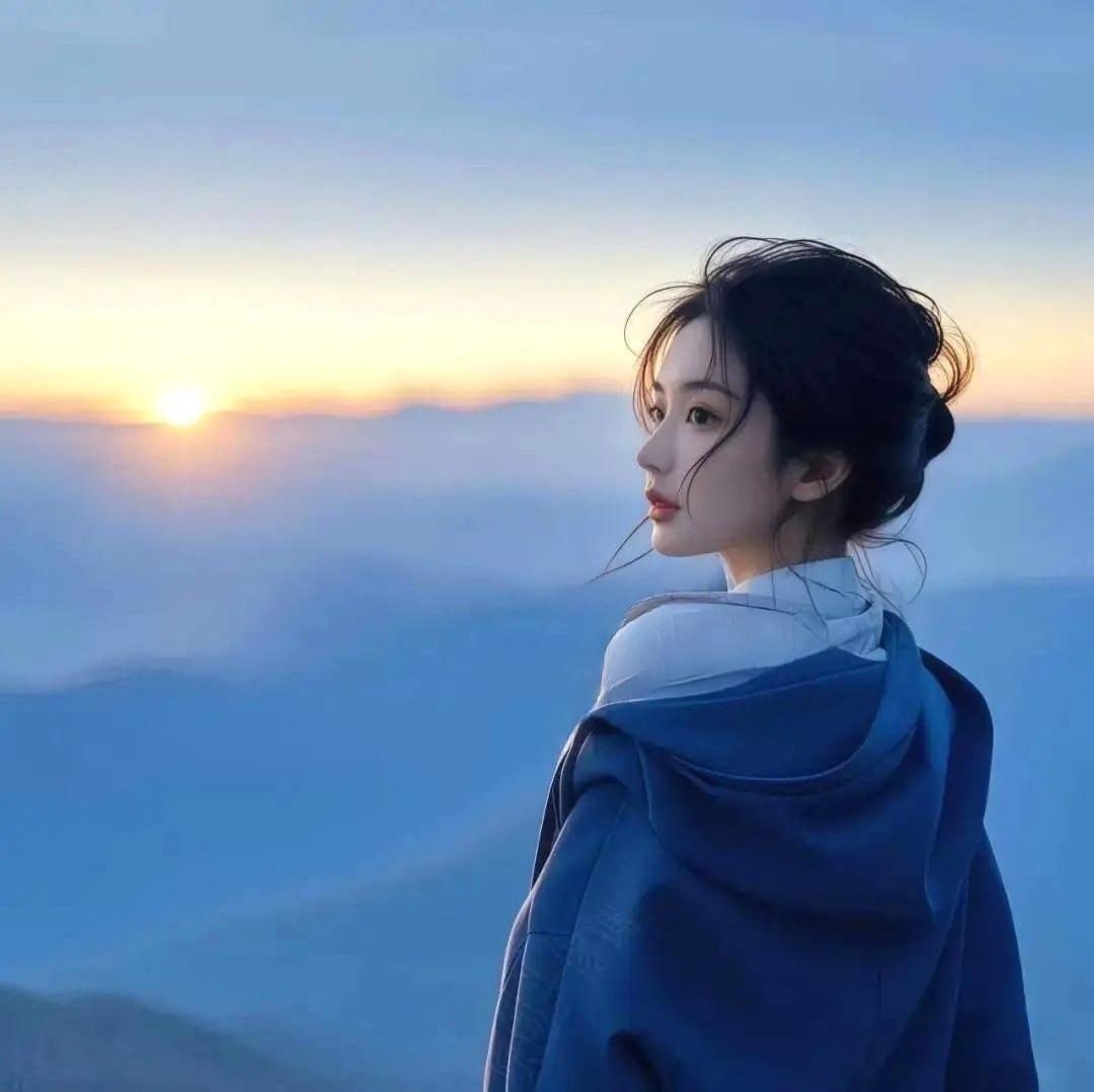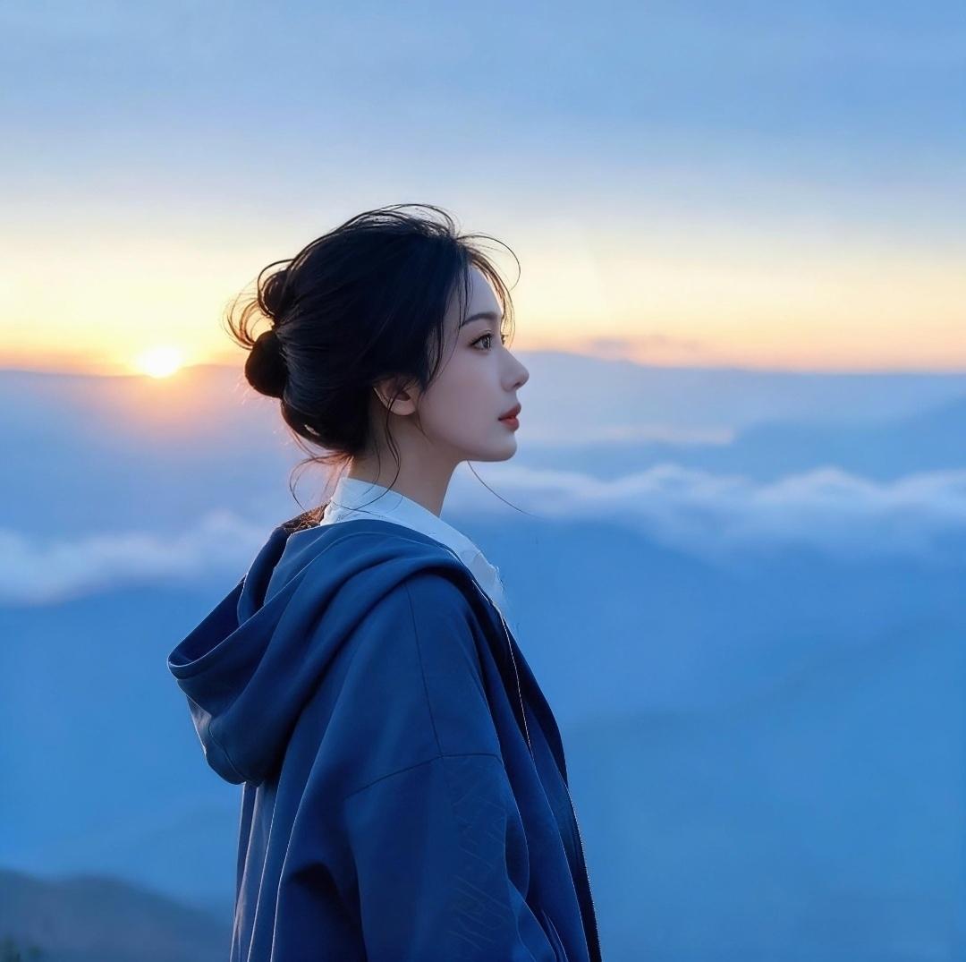 云海之上,少女与落日相映生辉☁️氛围感