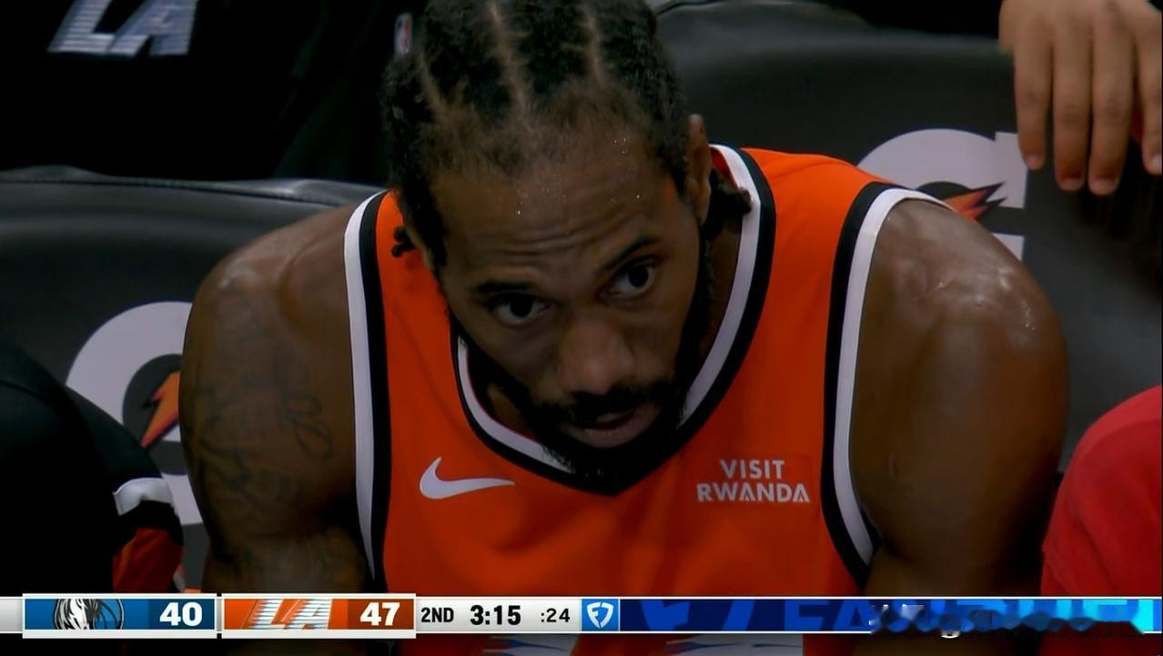 快船超级巨星伦纳德真是体力不支了!在今天快船主场迎战独行侠的比赛中,当时比赛进行到了第二节的3分15秒,快船以47:40领先对手。此刻转播镜头给到了快船的替补席,只见刚刚被替换下场休息的伦纳德看起来累坏了,他不停的喘着粗气,他的眼神里透露着疲惫,由此可见伦纳德的体力已经完全不支了。