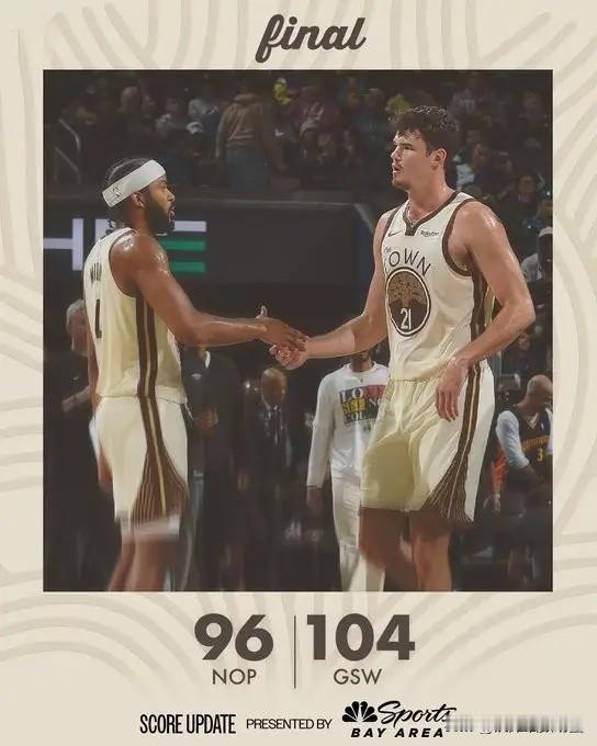 勇士官方真是太会提携年轻人了!在今天勇士主场以104:96力克鹈鹕的赛后,勇士官方特意更新社媒分享了一张赢球海报,值得一提的是,勇士官方并没有将赢球海报的封面人物给予老将巴特勒,而是给予了两位年轻人穆迪和波斯特。 本场比赛穆迪和波斯特在场上充满了活力,他们为球队的赢球做出了非常大的贡献,因此他们完全配得上这份殊荣。