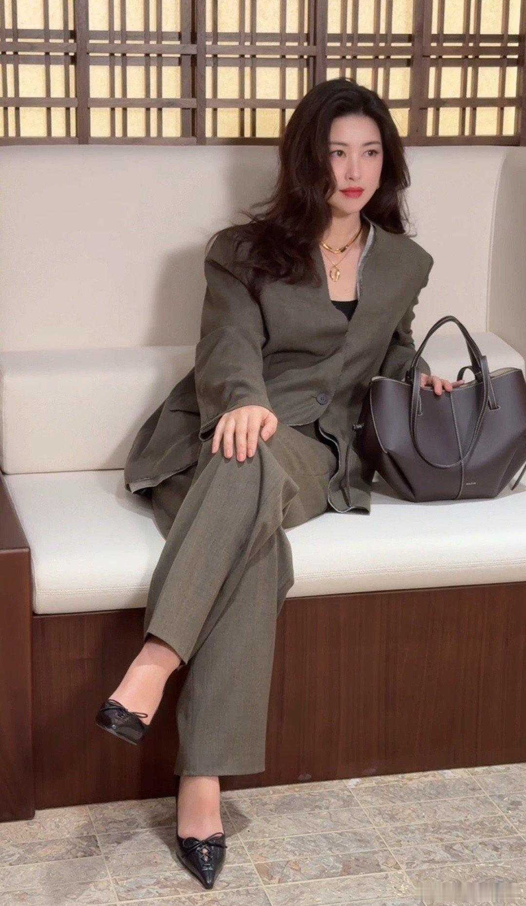 朱珠廓形西装大波浪 廓形西装搭配大波浪,活动造型尽显松弛精致感,金色饰品与红唇提亮整体,超对都市女性的时尚胃口~