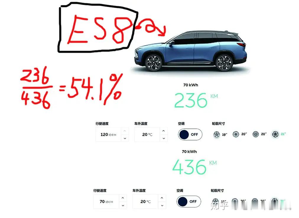 怀念当初电动车刚出来时,车企都有些拘谨和真诚。刚刷到懂车帝的纯电动车高速续航测试,高速顶着120km/h开,普遍只有200+ 300+公里的续航(除了小米YU7有420km)。整个测试过程还挺严谨,视频做得也很精良,看得出是个下了血本的大制作。但其实吧,往前推几年,消费者想知道电动车的高速续航根本没那么费劲。像特斯拉、蔚来之类的车企,官方上都会放一个续航计算器。只需要输入120km/h的车速,直接就能显示预估的高速续航里程。虽然这也是计算值,但基本八九不离十。实诚如蔚来,就直截了当地告诉你,70度只够你高速跑236公里,还是温度适宜不开空调的情形。甭管电耗高低,都能大大方方地拿出来。特斯拉也一样,相比车速70km/h,120km/h续航几乎都要打对折。现如今,电动车的技术突飞猛进,续航也越来越长,但消费者想知道高速续航却反而更难了。车企当年的那份真诚,也随参数内卷和价格战消失了。新能源汽车大v聊车