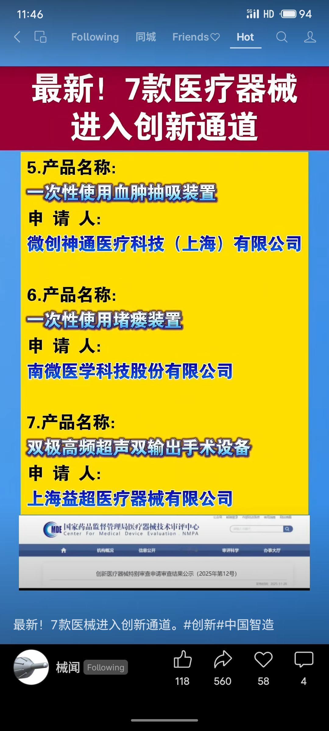 近日,7款国产医疗器械进入创新审批通道,涵盖主动脉瓣置换辅助系统、持续葡萄糖监测、人工血管及超声手术设备等高端领域。这些产品技术含量高、应用前景广,充分展现我国医疗科技的创新活力与“中国智造”在生命健康领域的突破进展。
