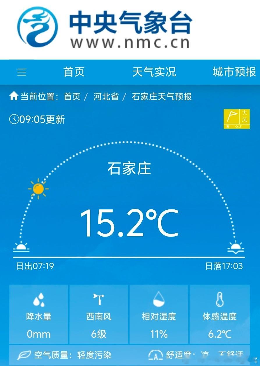 【大风和干燥】今天冷空气继续东移南下,华北多地有大风天气。本来就干燥的西风气流翻过太行山,会变得更加干燥。今天上午石家庄相对湿度已经降至11%,今天下午相对湿度可能不到10%。河北南部,河南北部,山东西部,今天下午都是有风又特别干燥,要格外警惕火灾的发生!